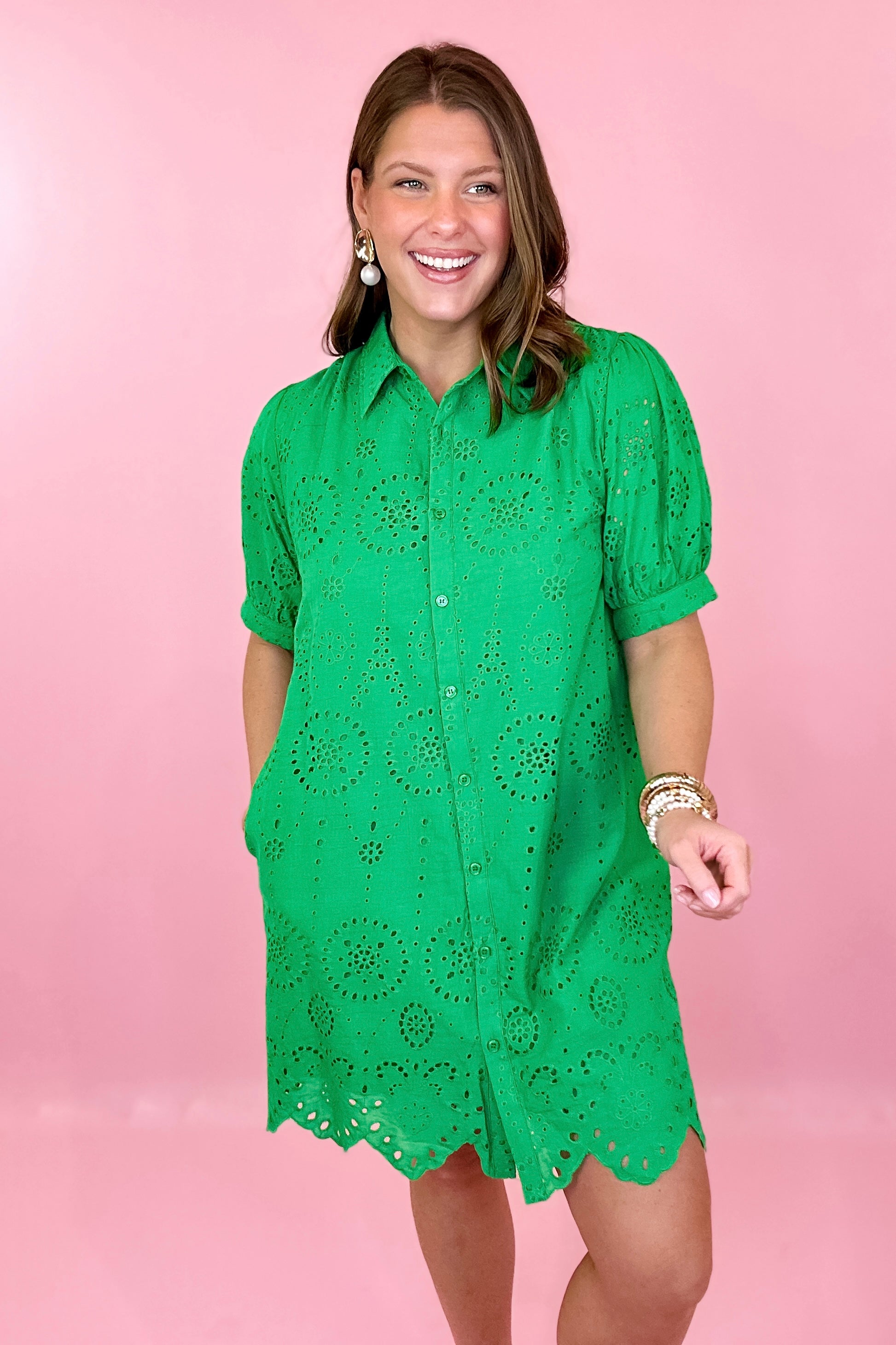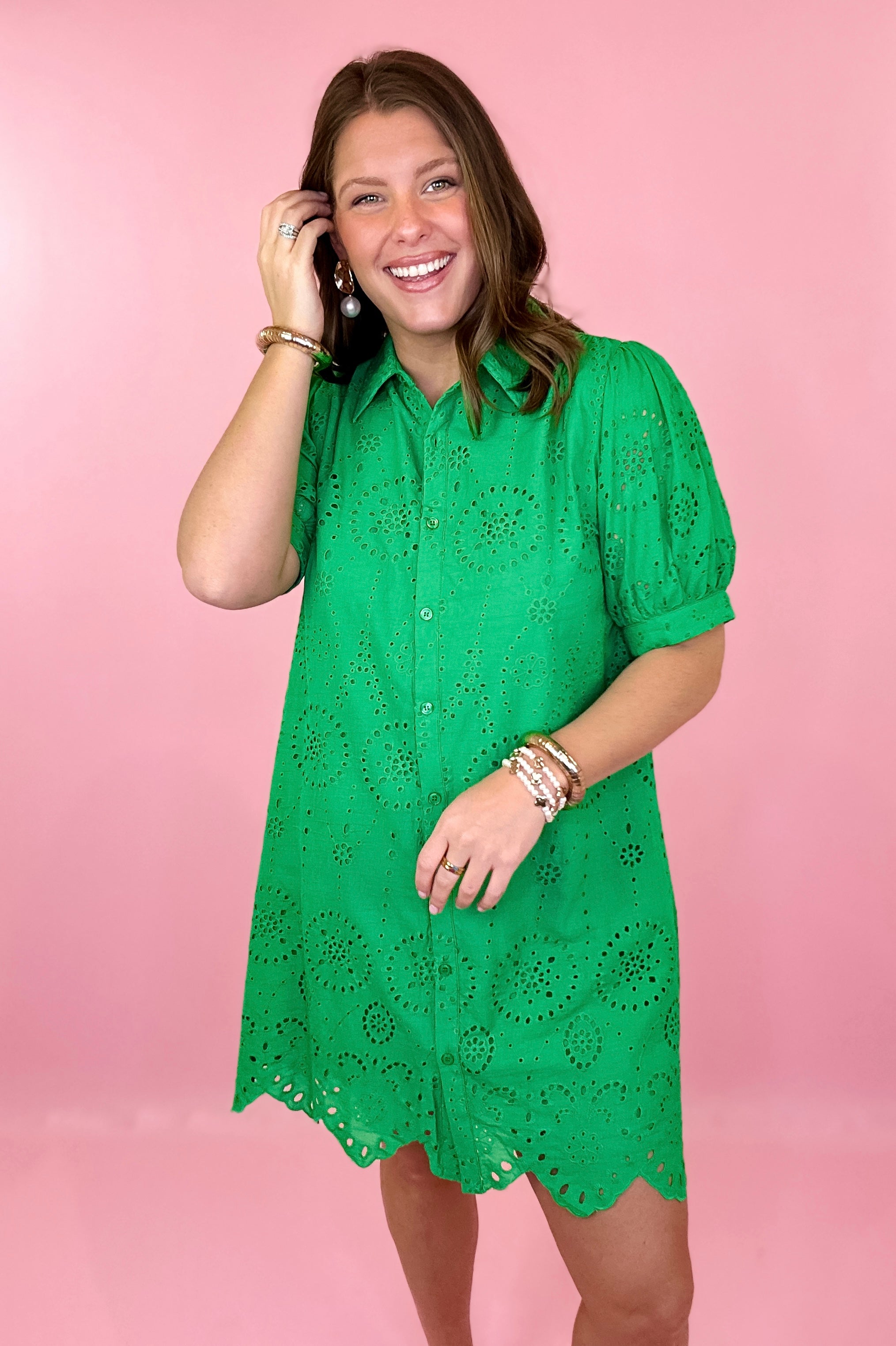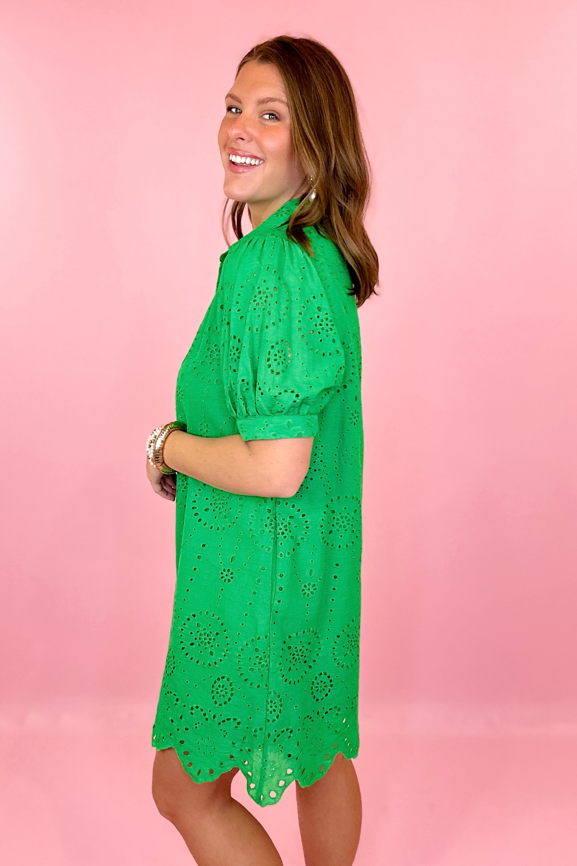 A Sweet Day Eyelet Mini Dress - Kelly Green