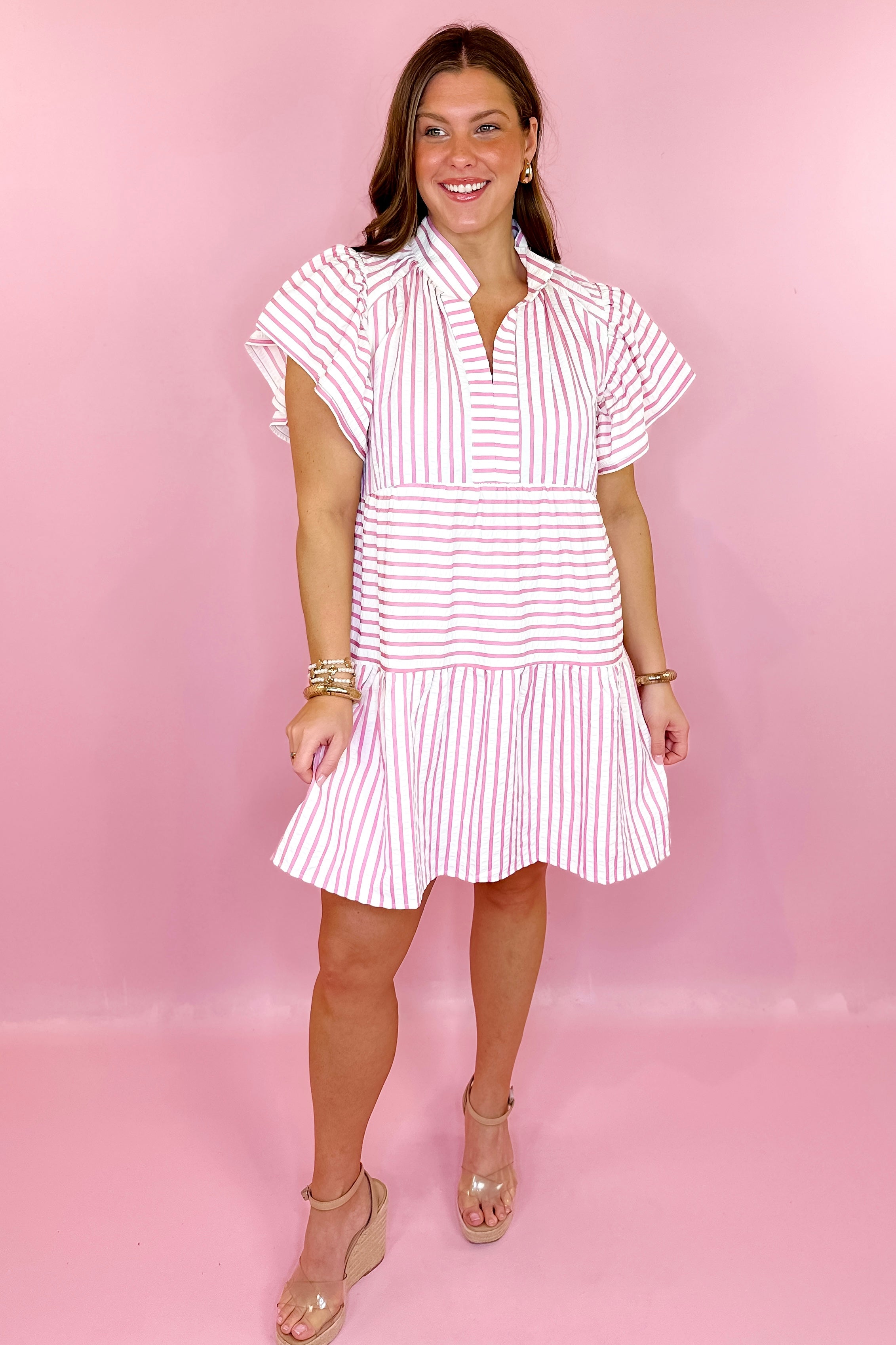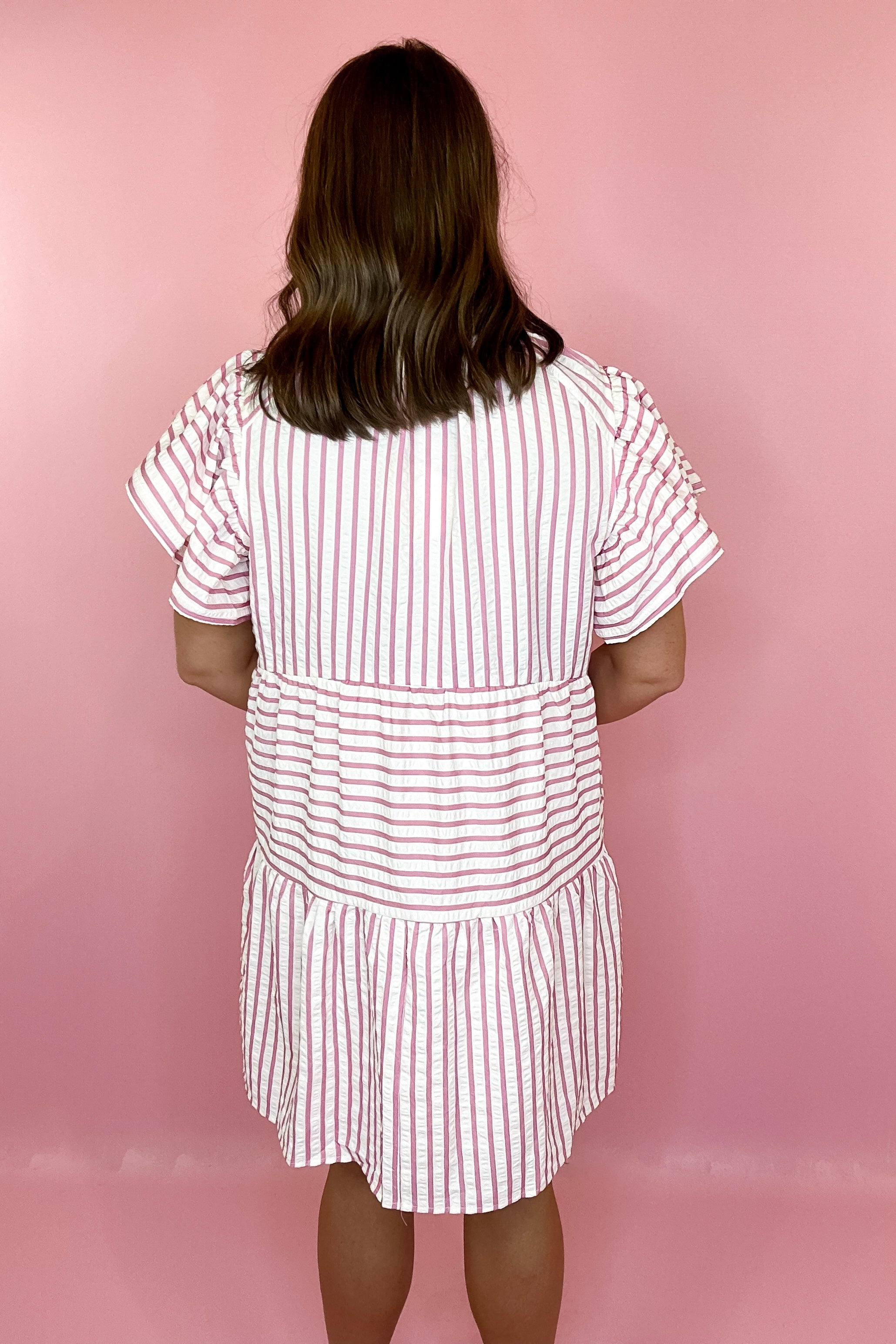 Boardwalk Charm Striped Dress - Pink