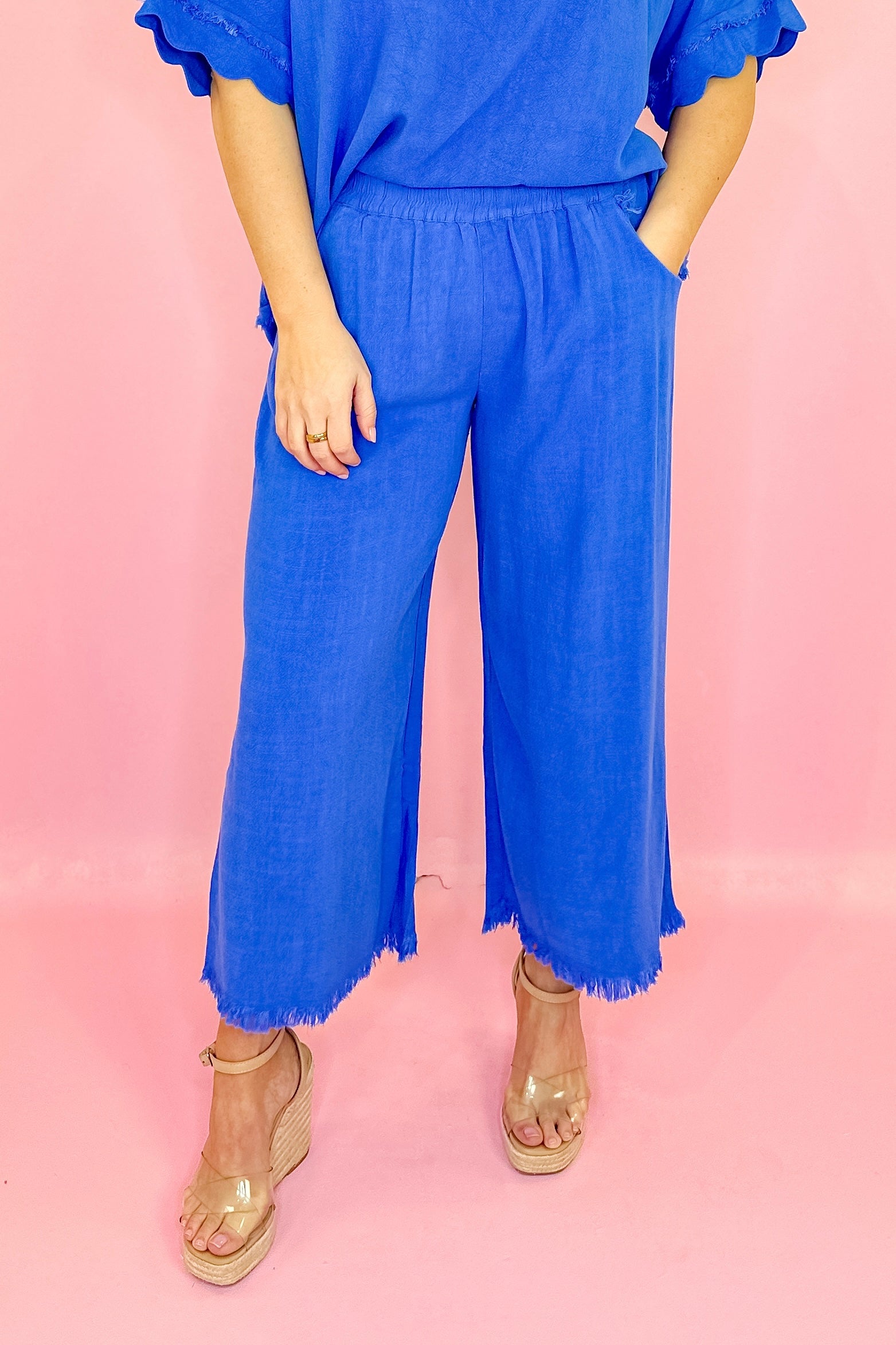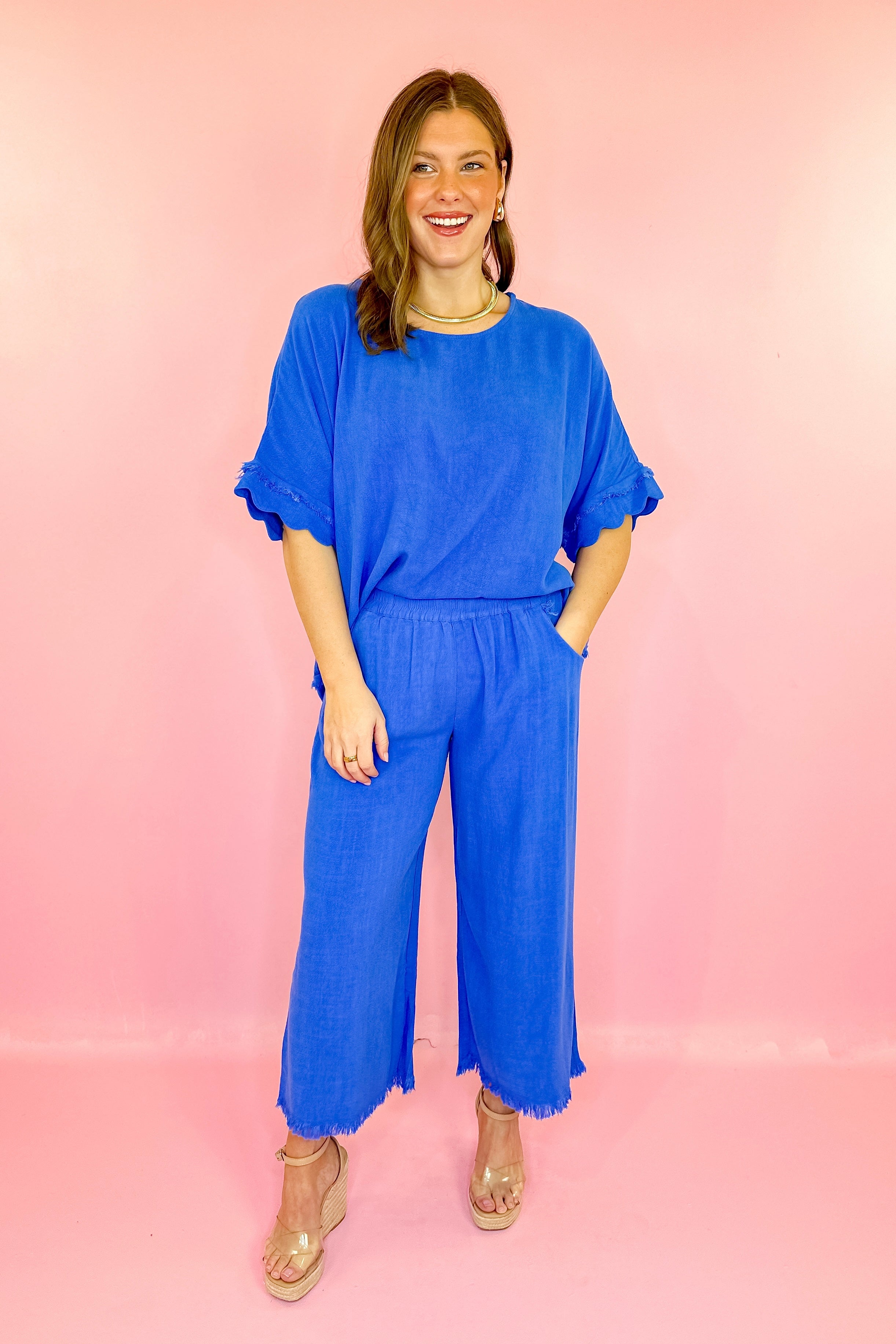 Chill Day Linen Wide Leg Pant - Cerulean Blue
