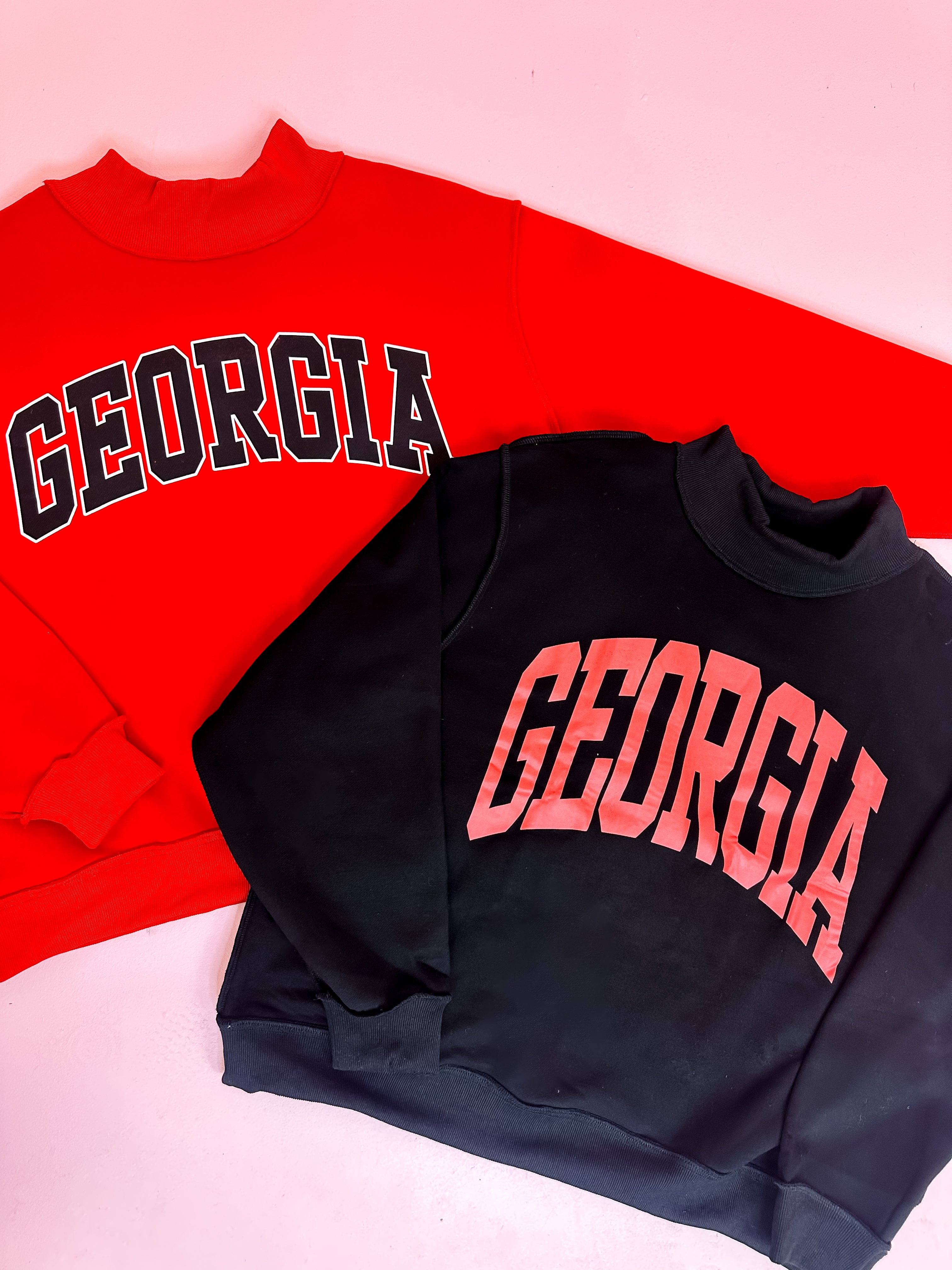 Georgia/GA Reversible Mock Sweatshirt - Red