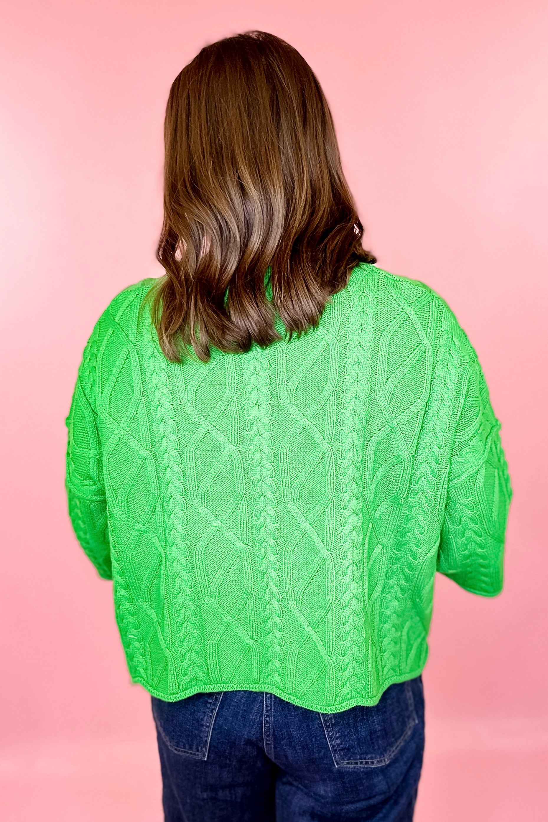 Hopeful Dreams Cable Knit Short Sleeve Sweater - Green