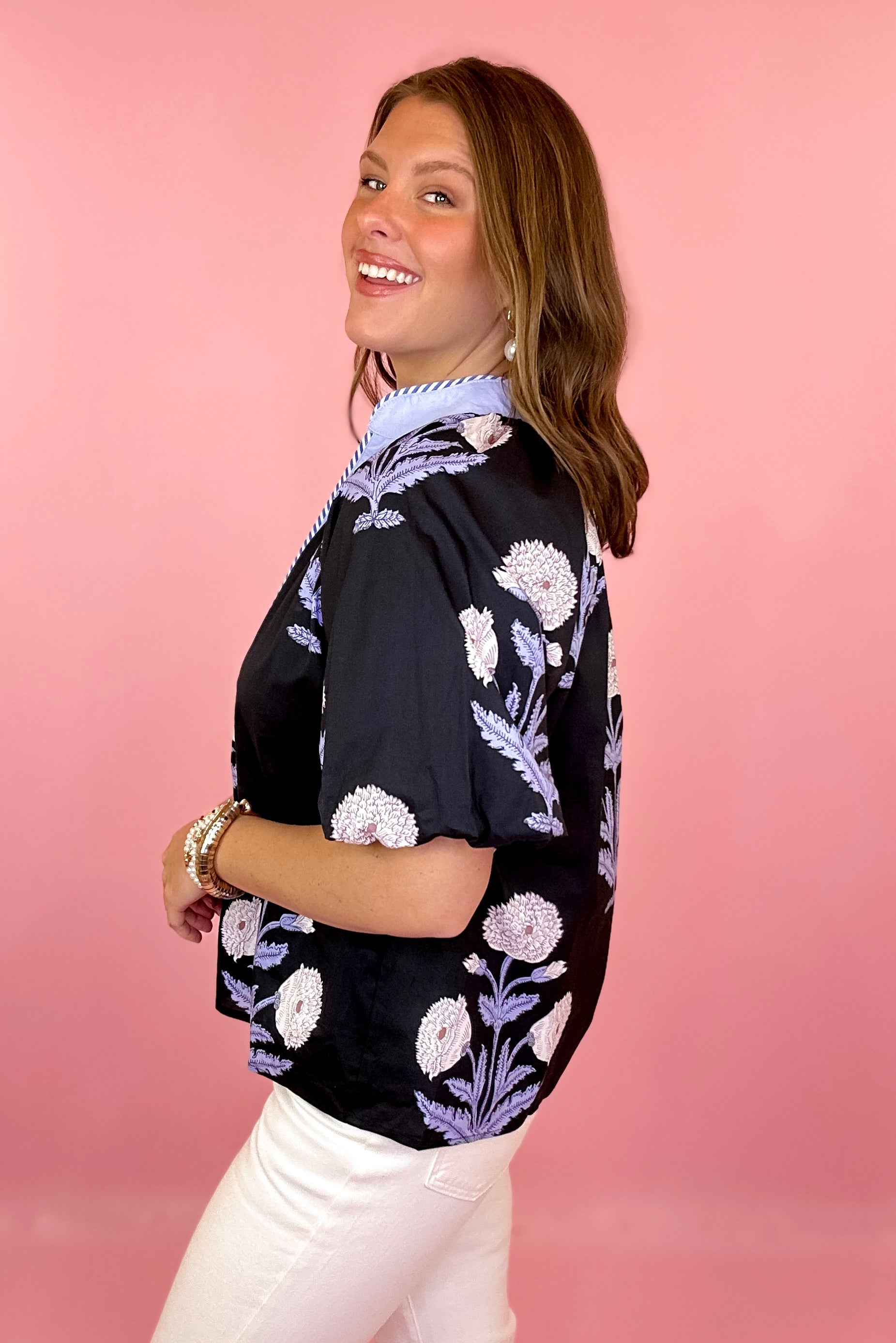 One Last Chance Floral Top - Black/Blue