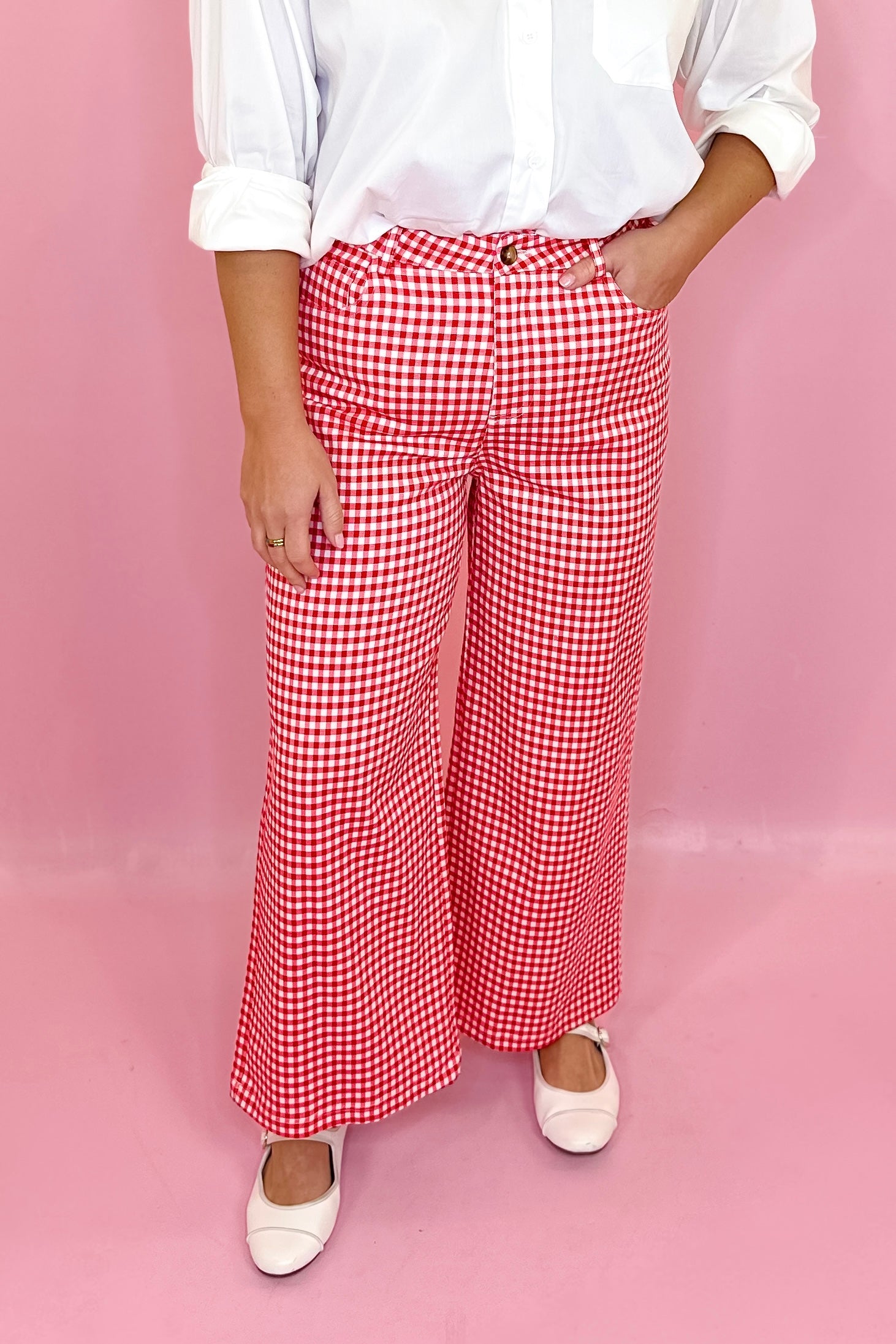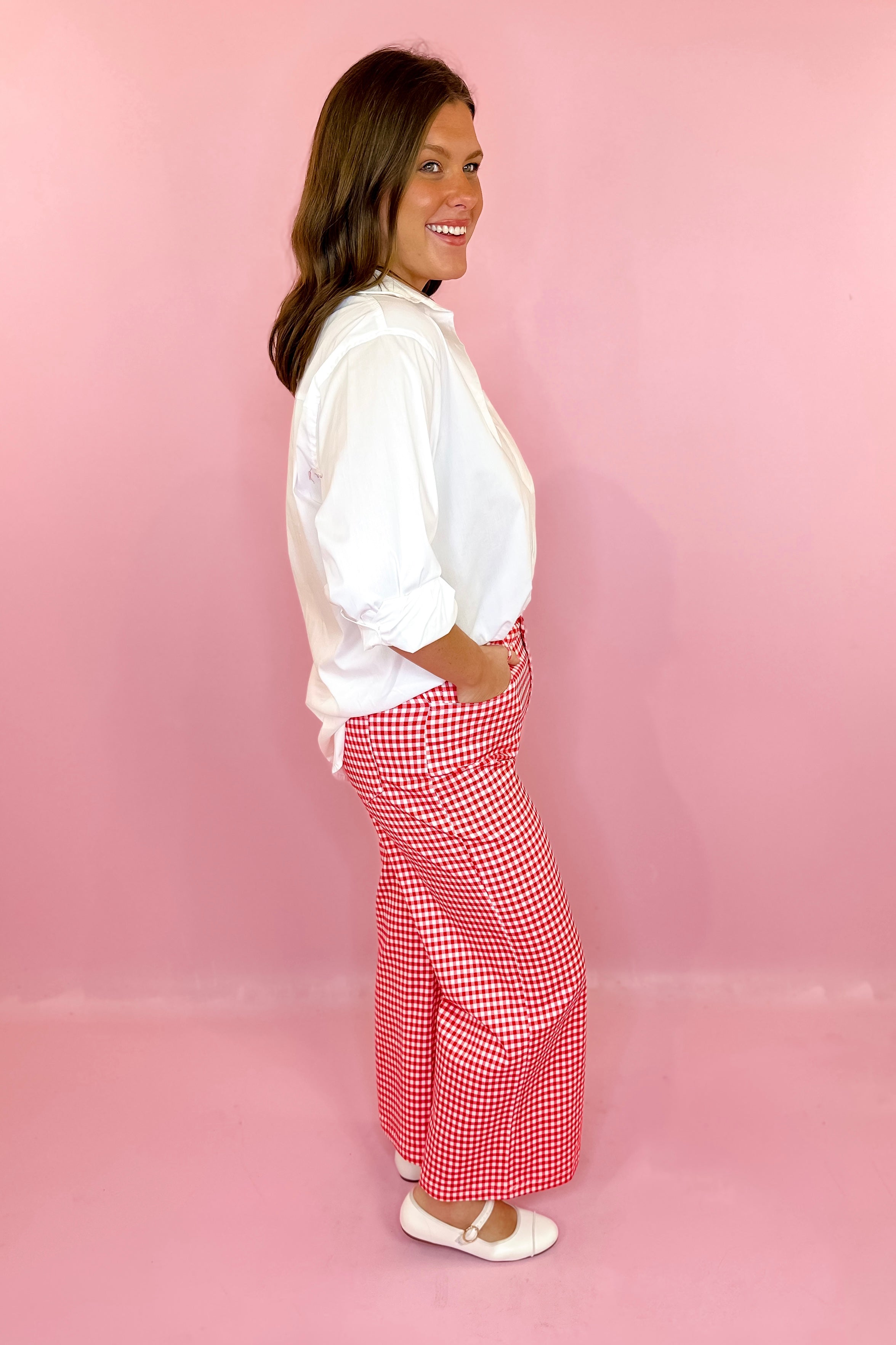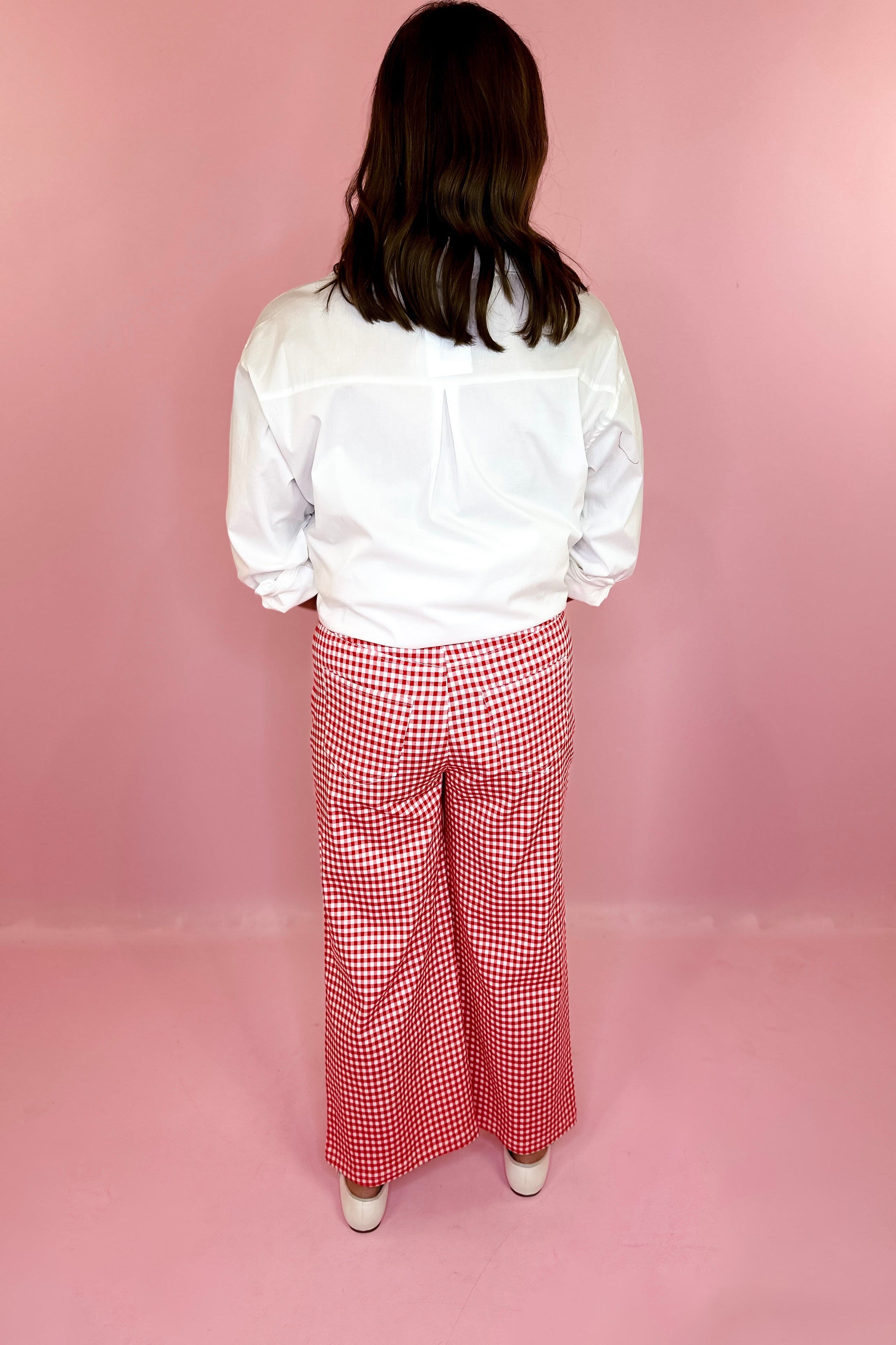 Ready To Go Gingham Straight Leg Pants - Red