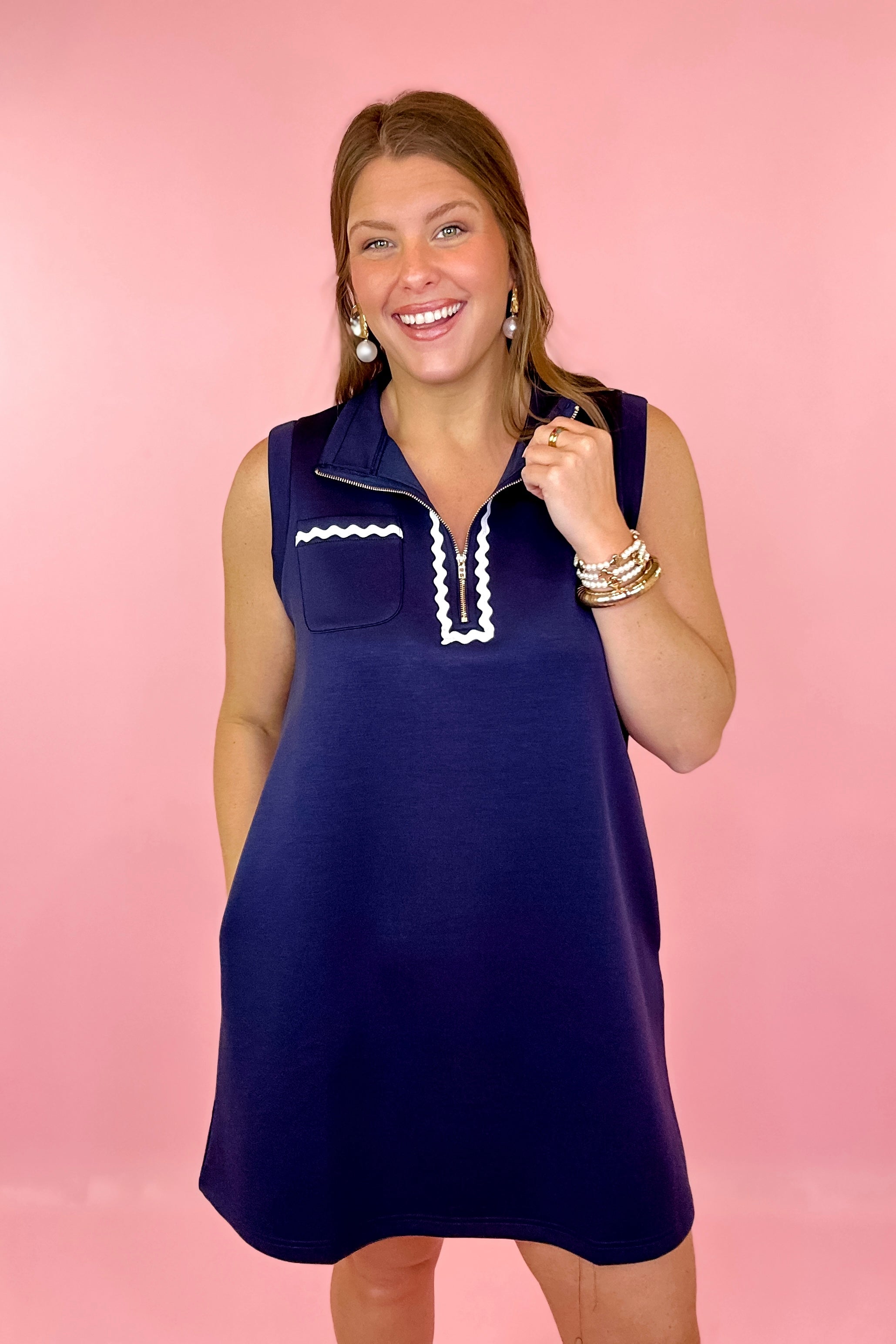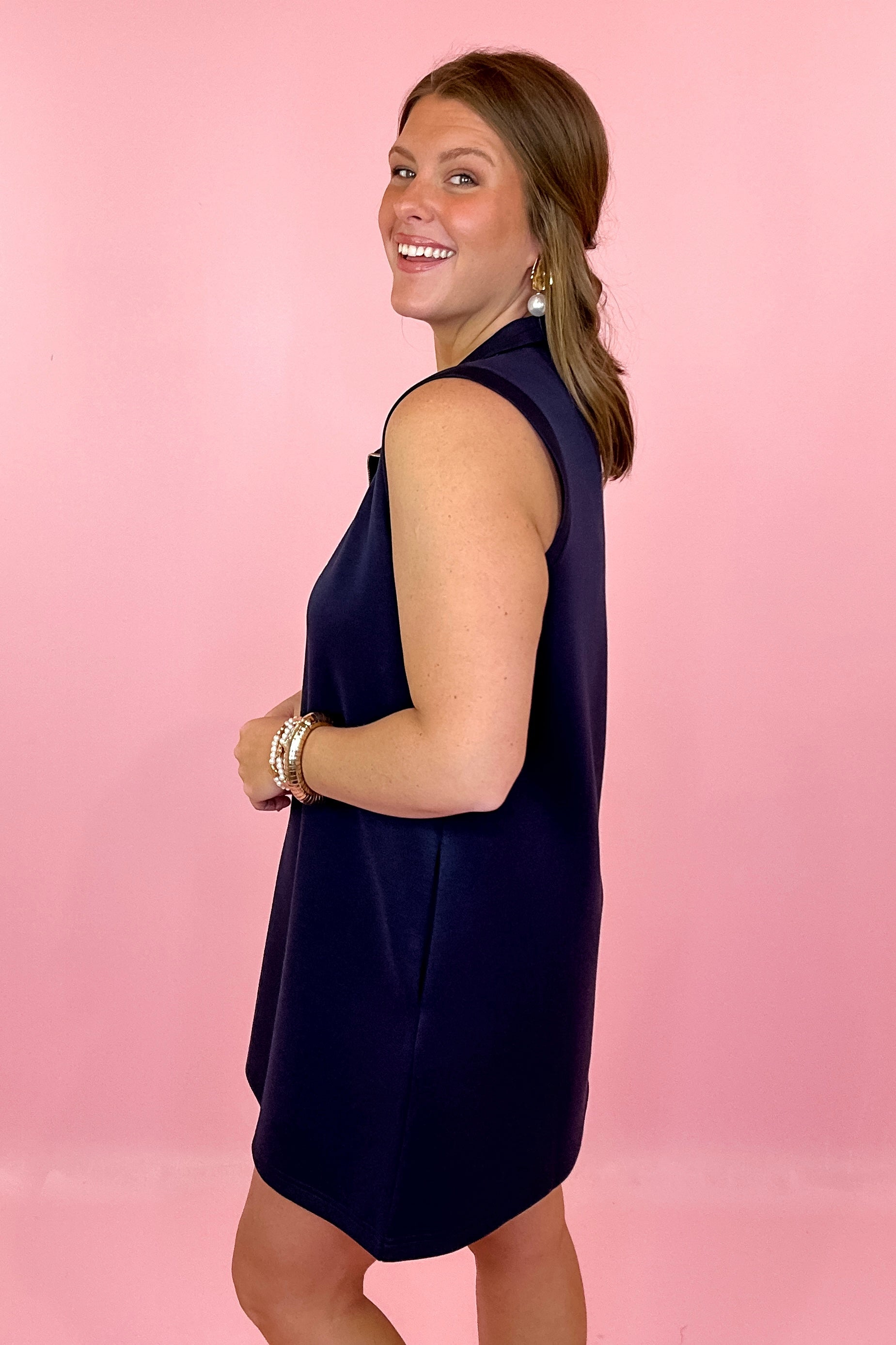 Ready To Jet Sleeveless Scuba Mini Dress - Navy
