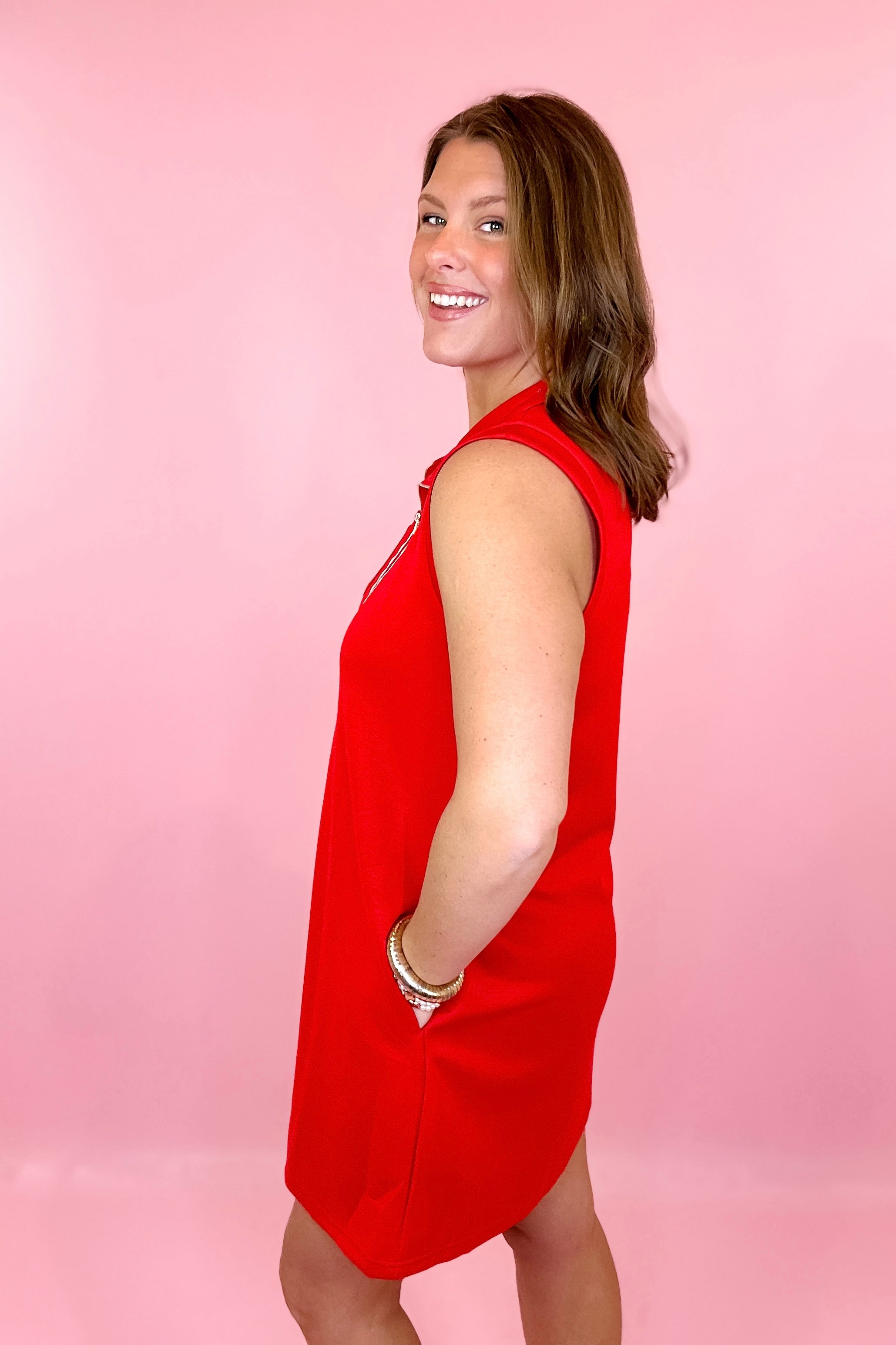 Ready To Jet Sleeveless Scuba Mini Dress - Red