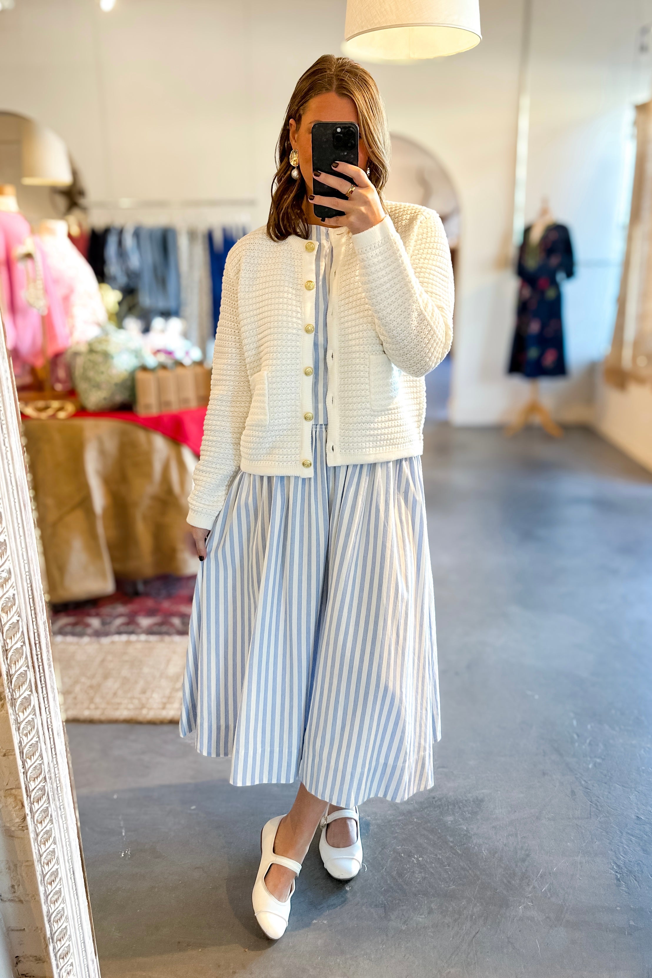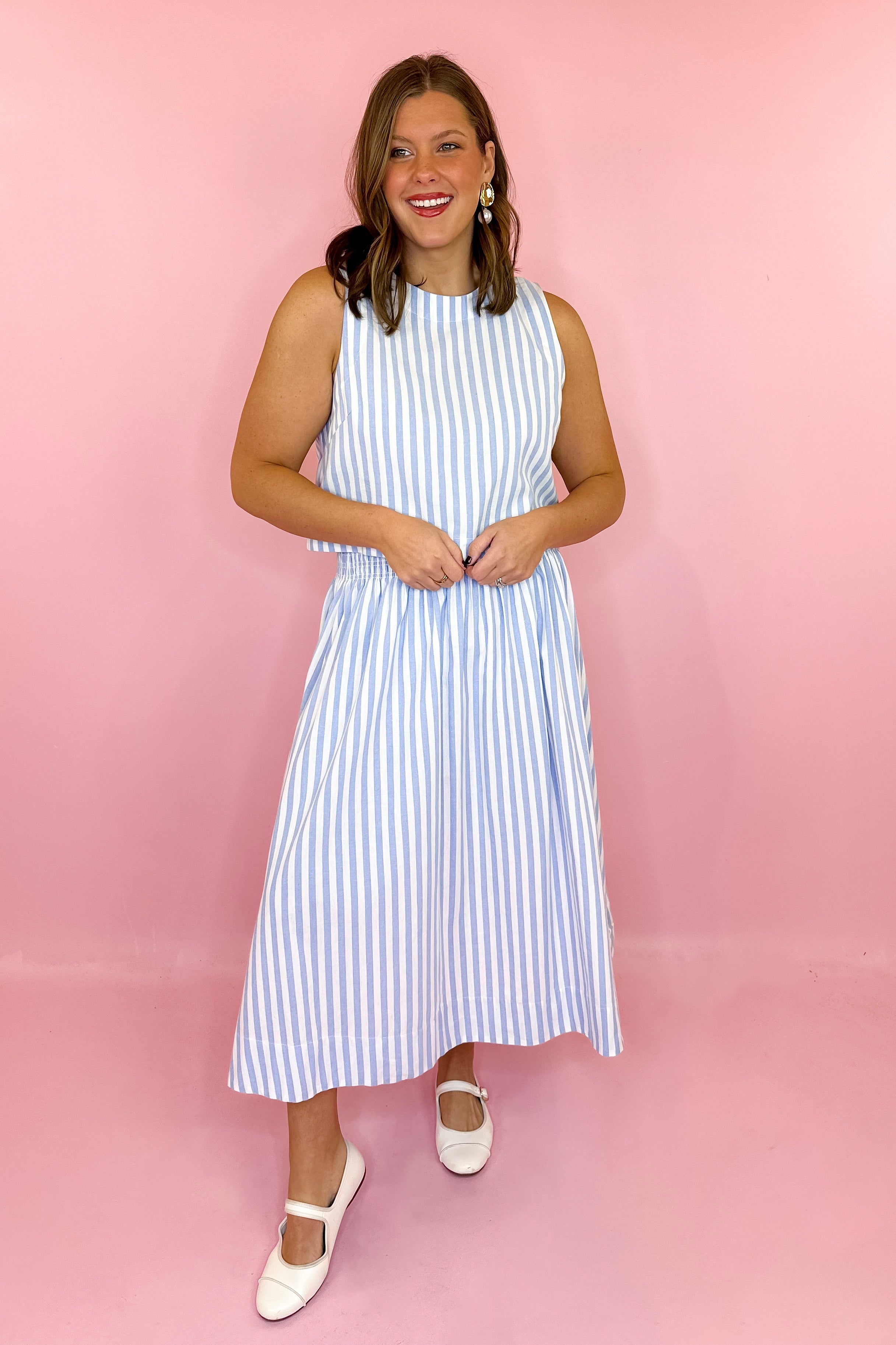 Simply Stated Poplin Top + Skirt Set - Blue Stripe