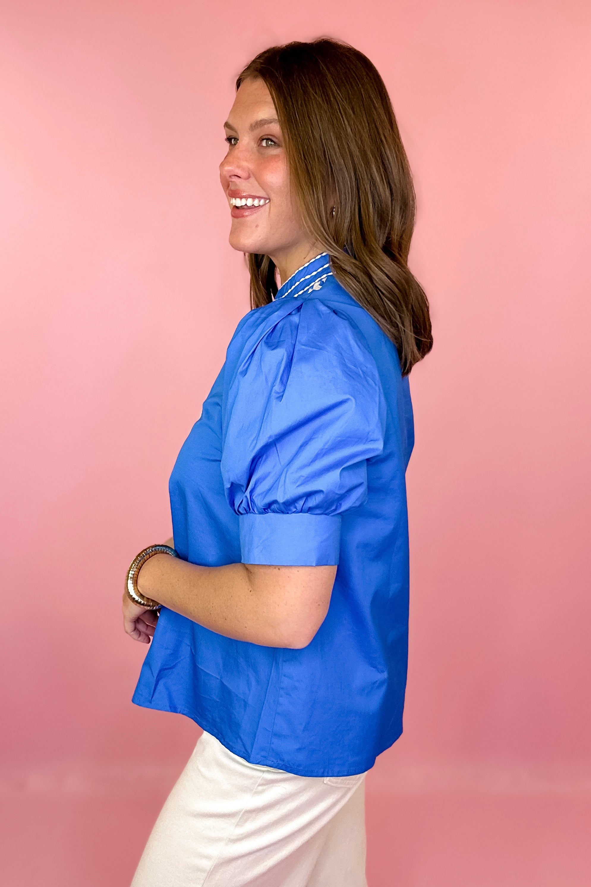 - Solid cerulean blue Top