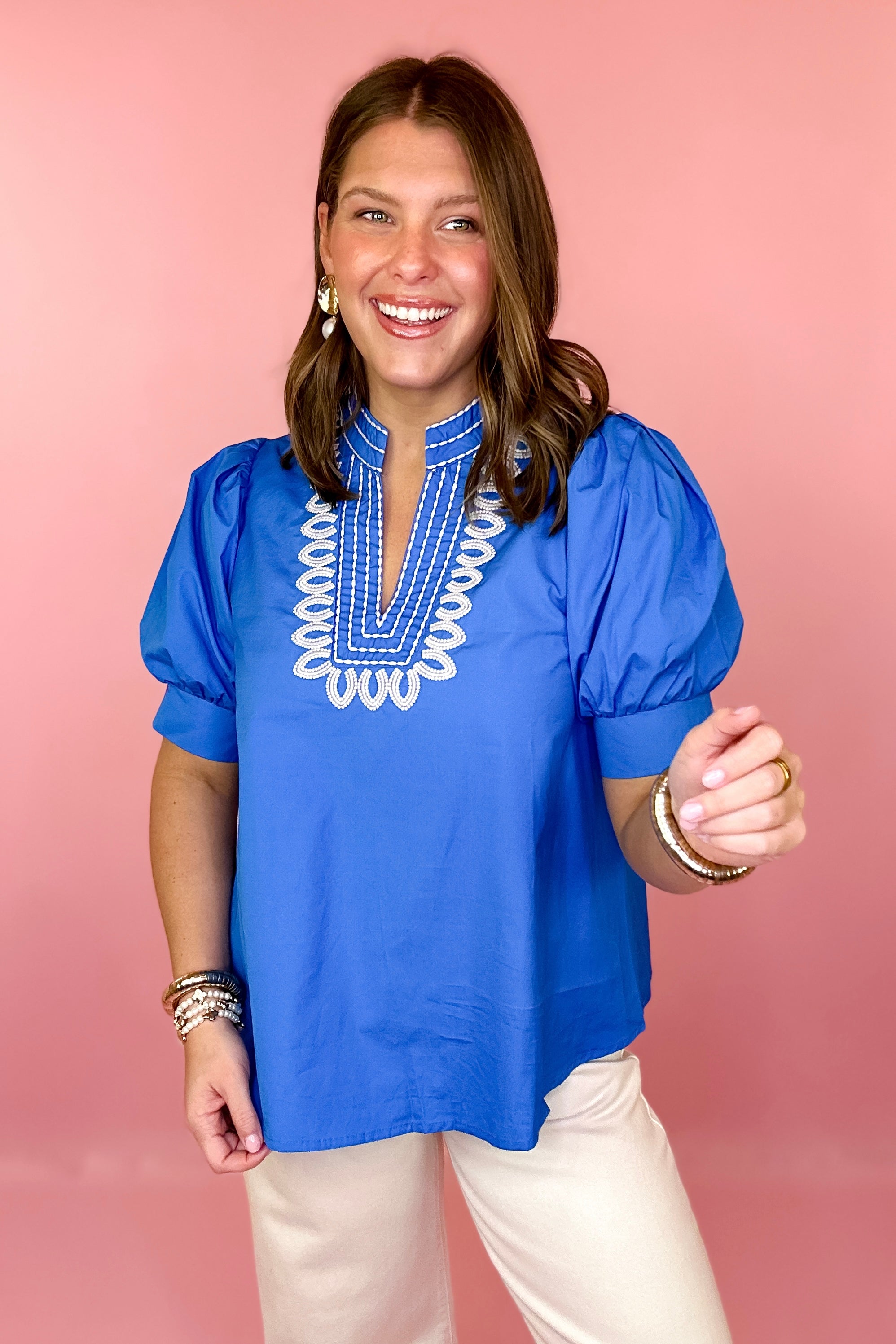 Warm Wishes Embroidered Top- Blue