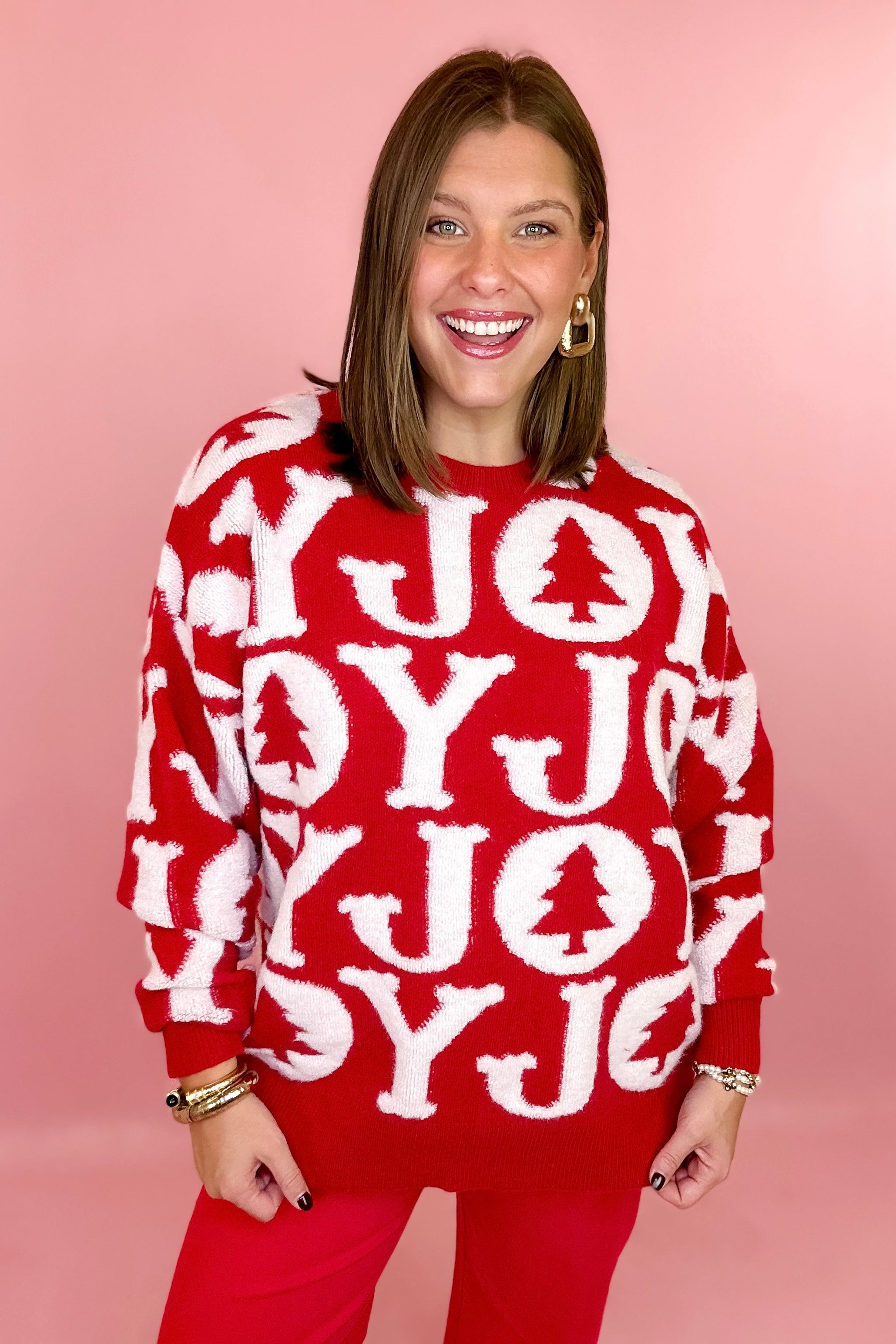 Joy 3D Pullover Holiday Sweater - Red