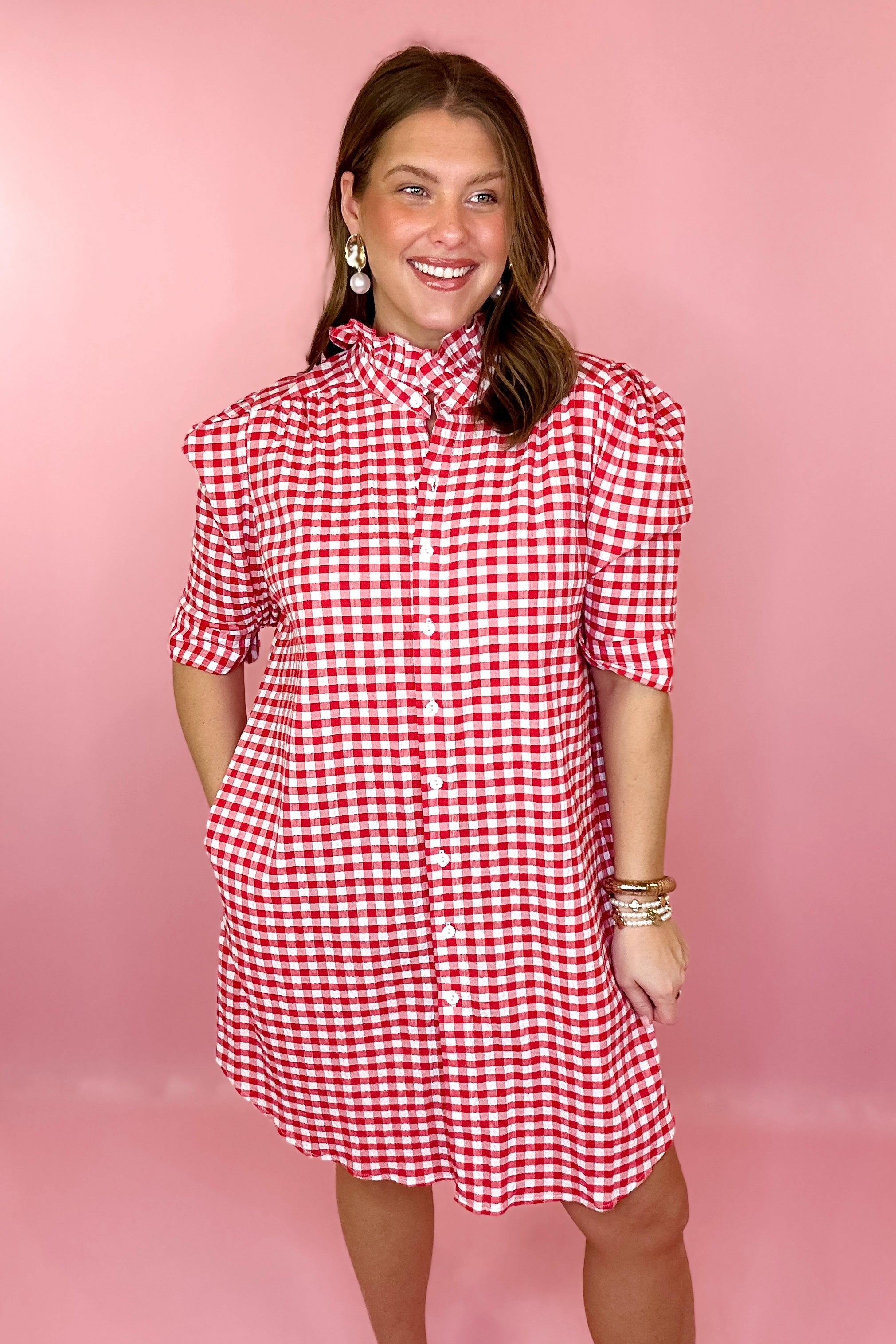 Model Stats: Izzy is 5'8", typically wears a size 10/12 in bottoms and a 38D bust. She is wearing a large in the dress.