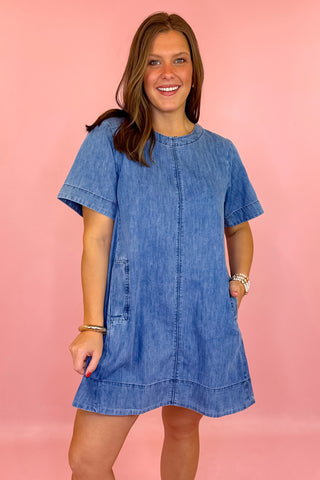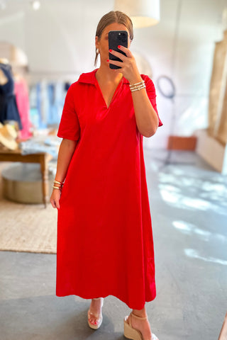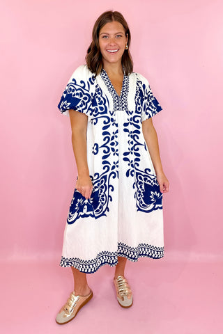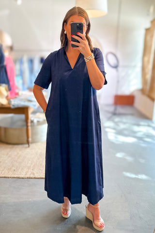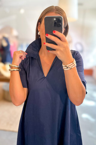 Adrienne: Audrey Ruffle Collar Midi Dress - Navy