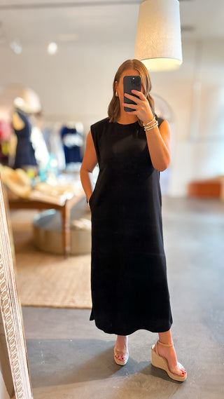 Adrienne: Audrey Ruffle Collar Midi Dress - Black