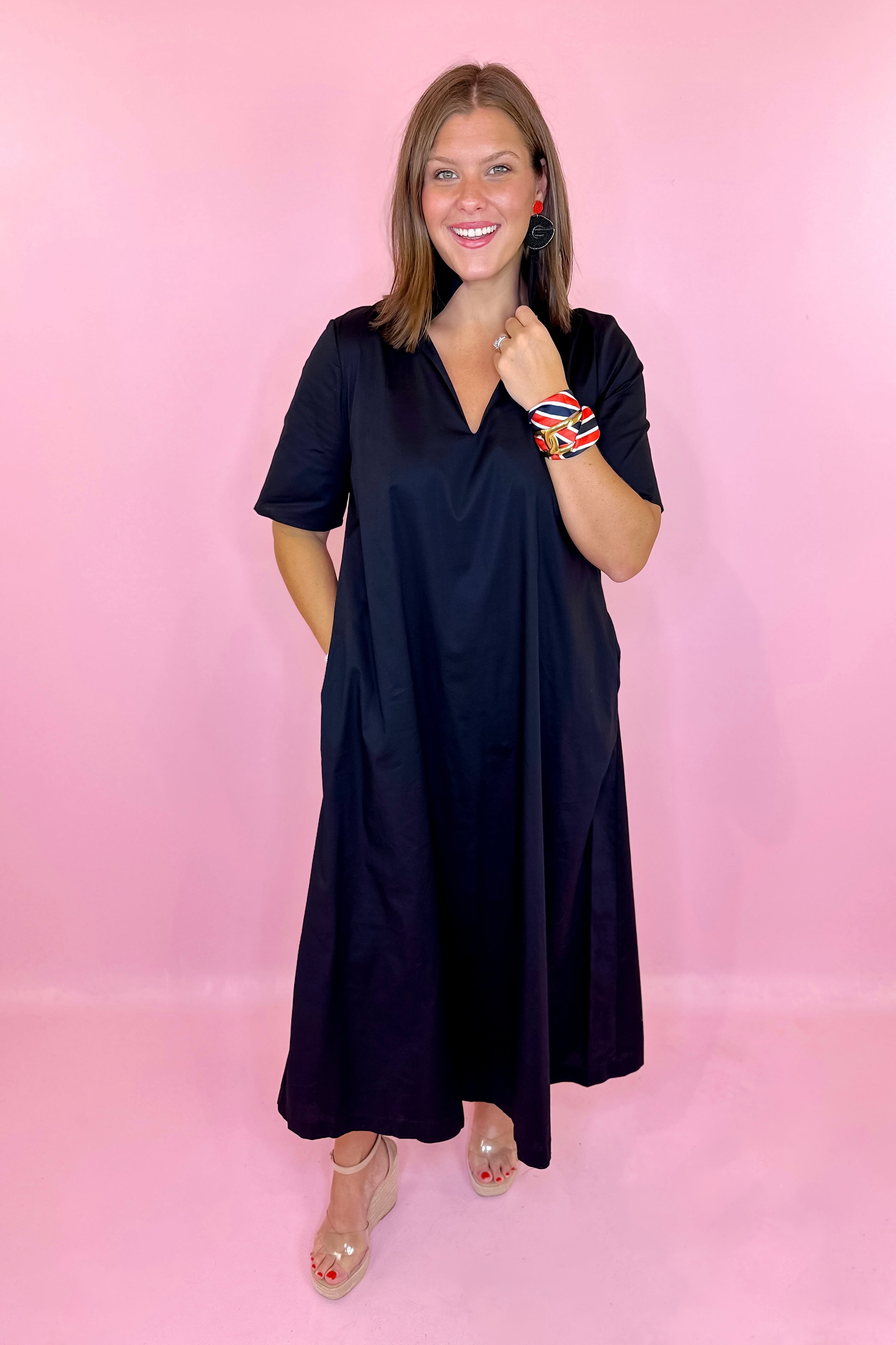 Adrienne: Audrey Ruffle Collar Midi Dress - Black