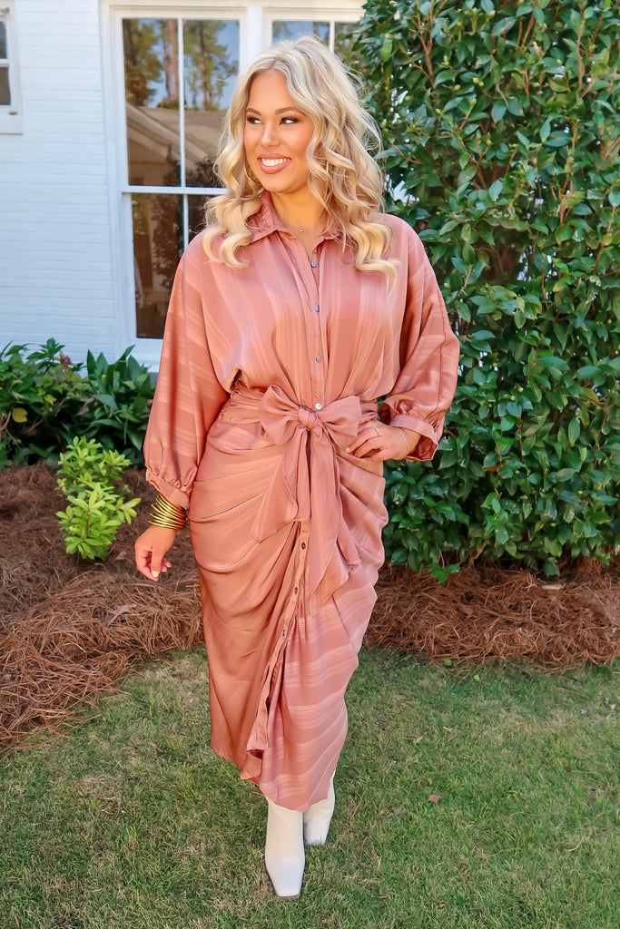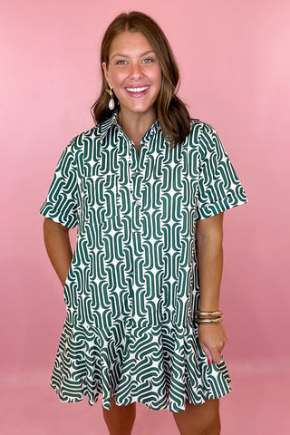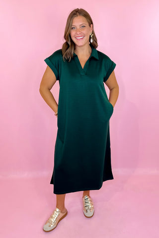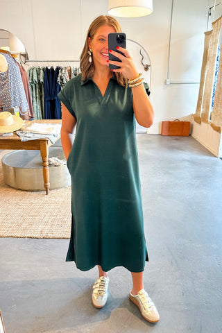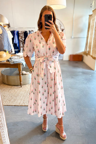 Adrienne: Regan Button Down Midi Dress - Olive Ten Stripe