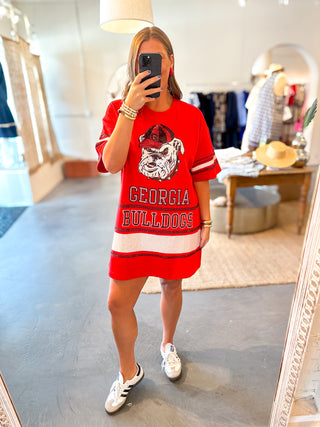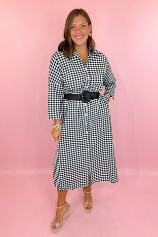 Adrienne: Regan Button Down Midi Dress - Navy Ten Stripe
