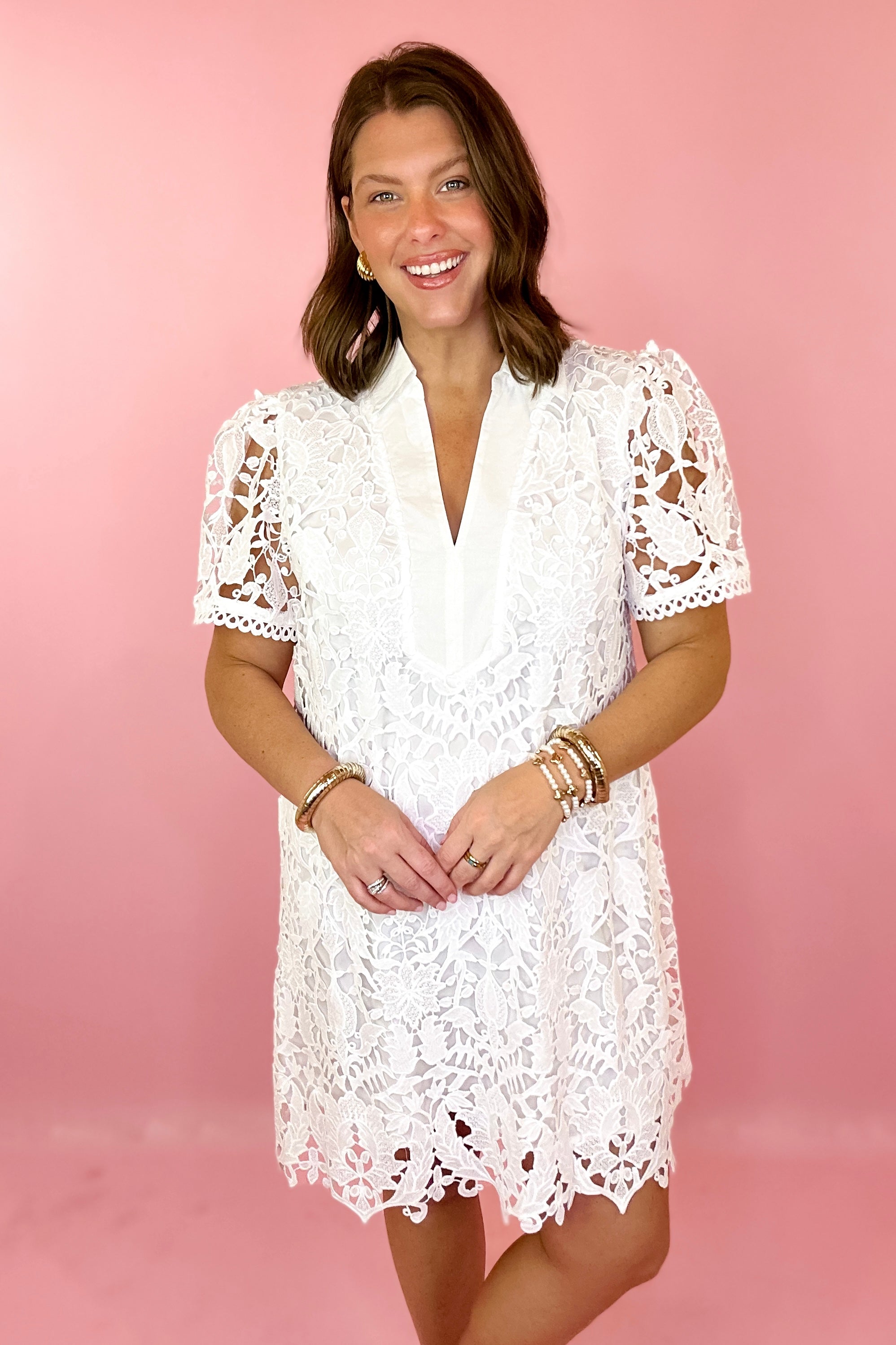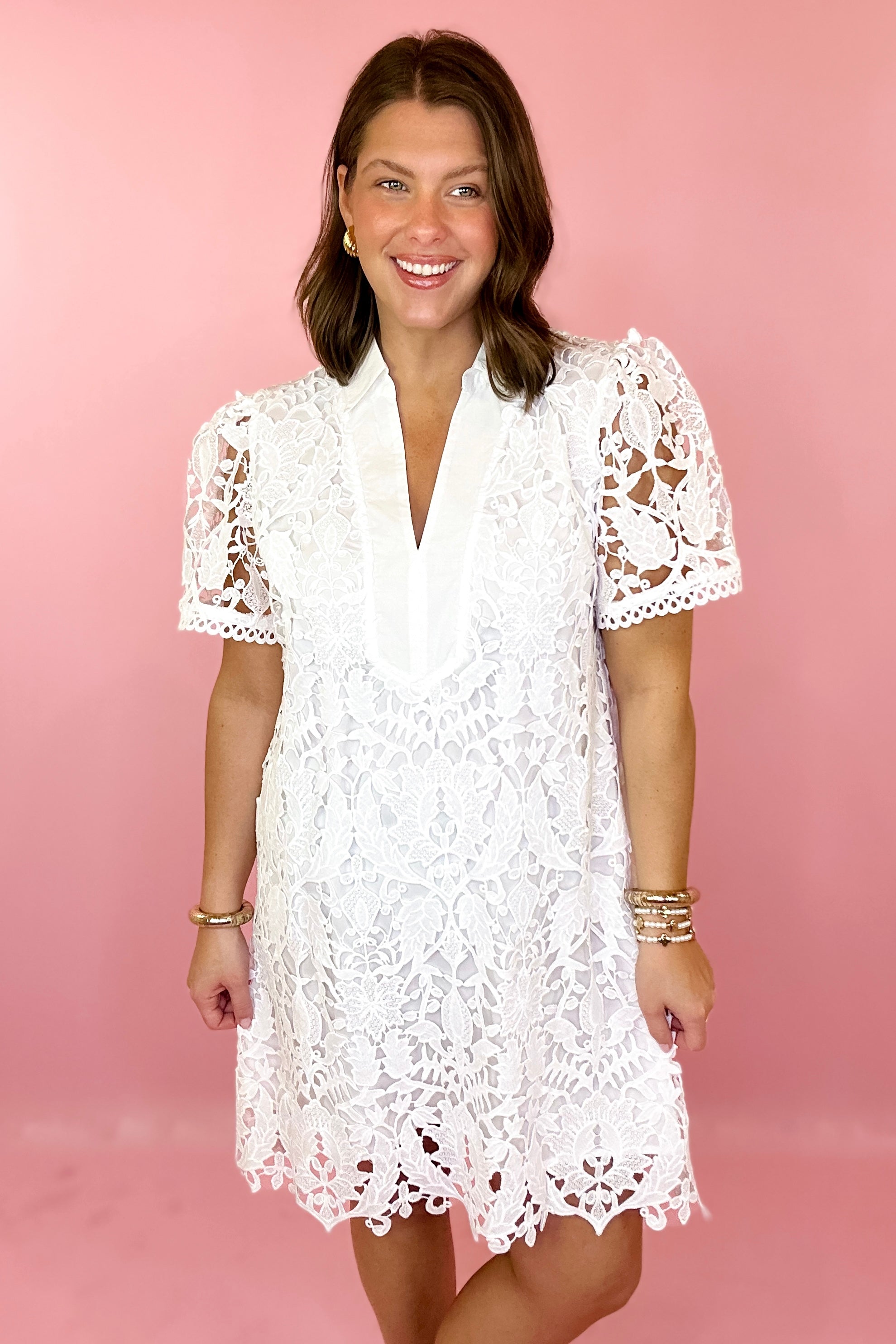 - White mini dress with a lace overlay