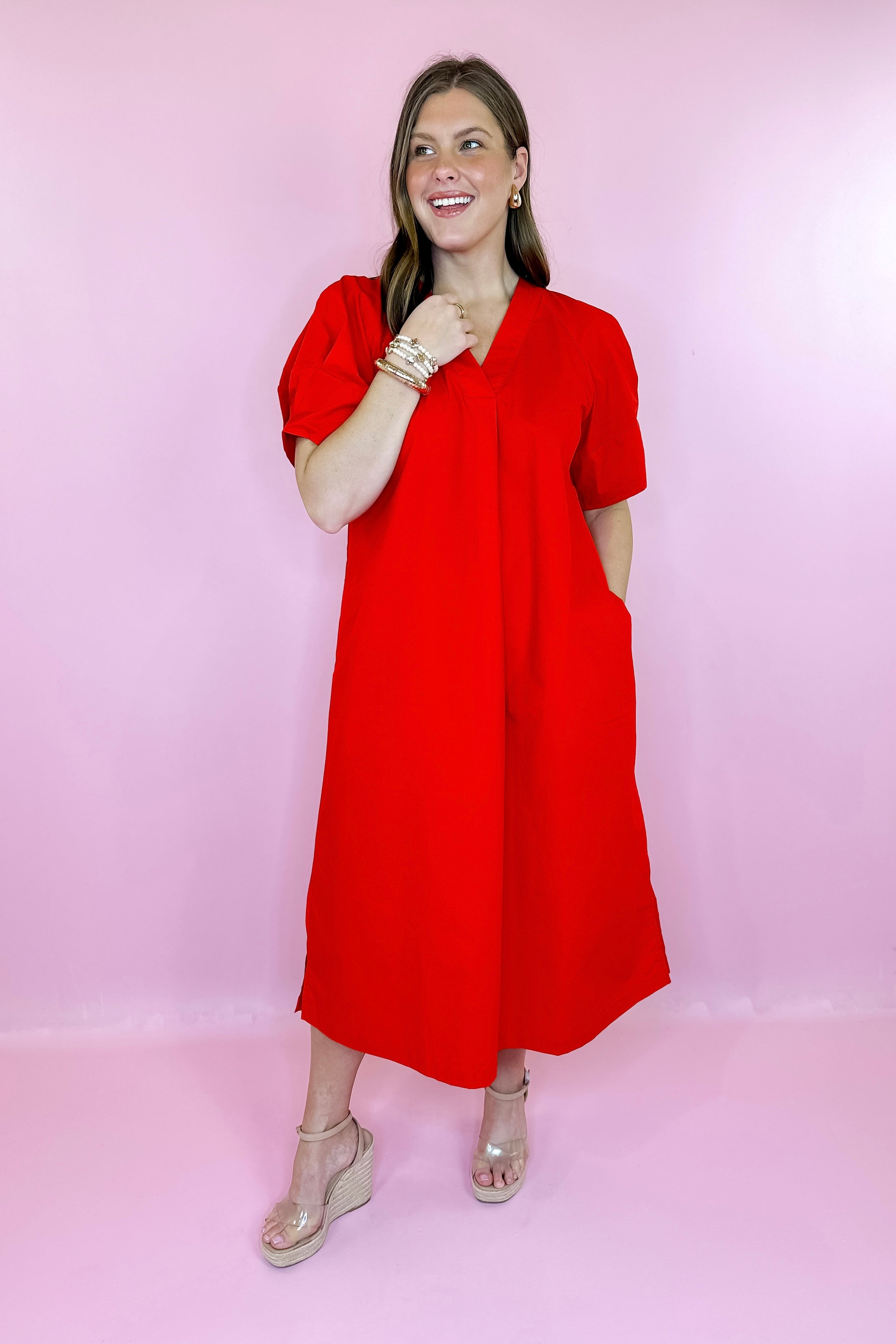 In A Good Mood Midi Dress - Red