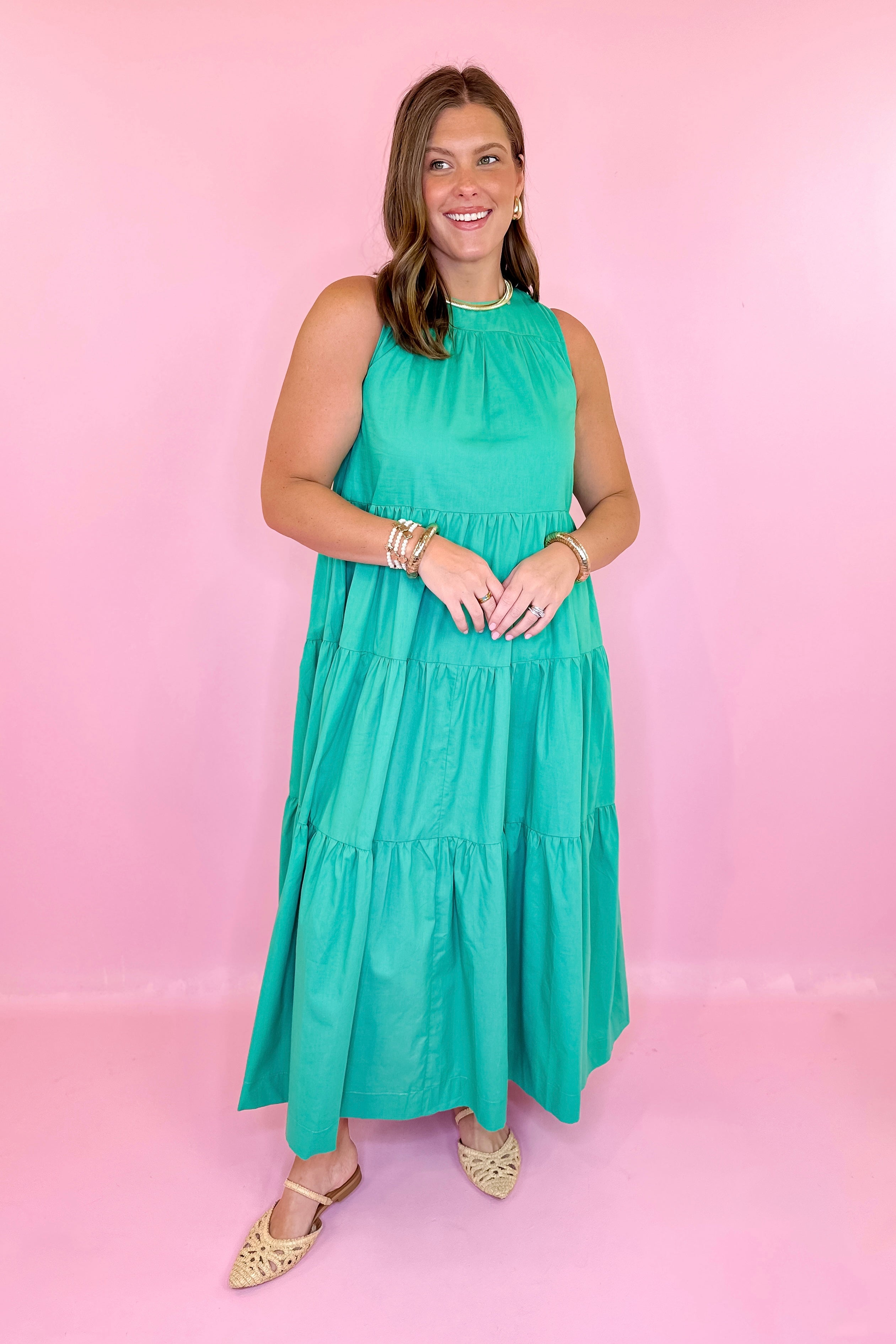 • Green tiered maxi dress