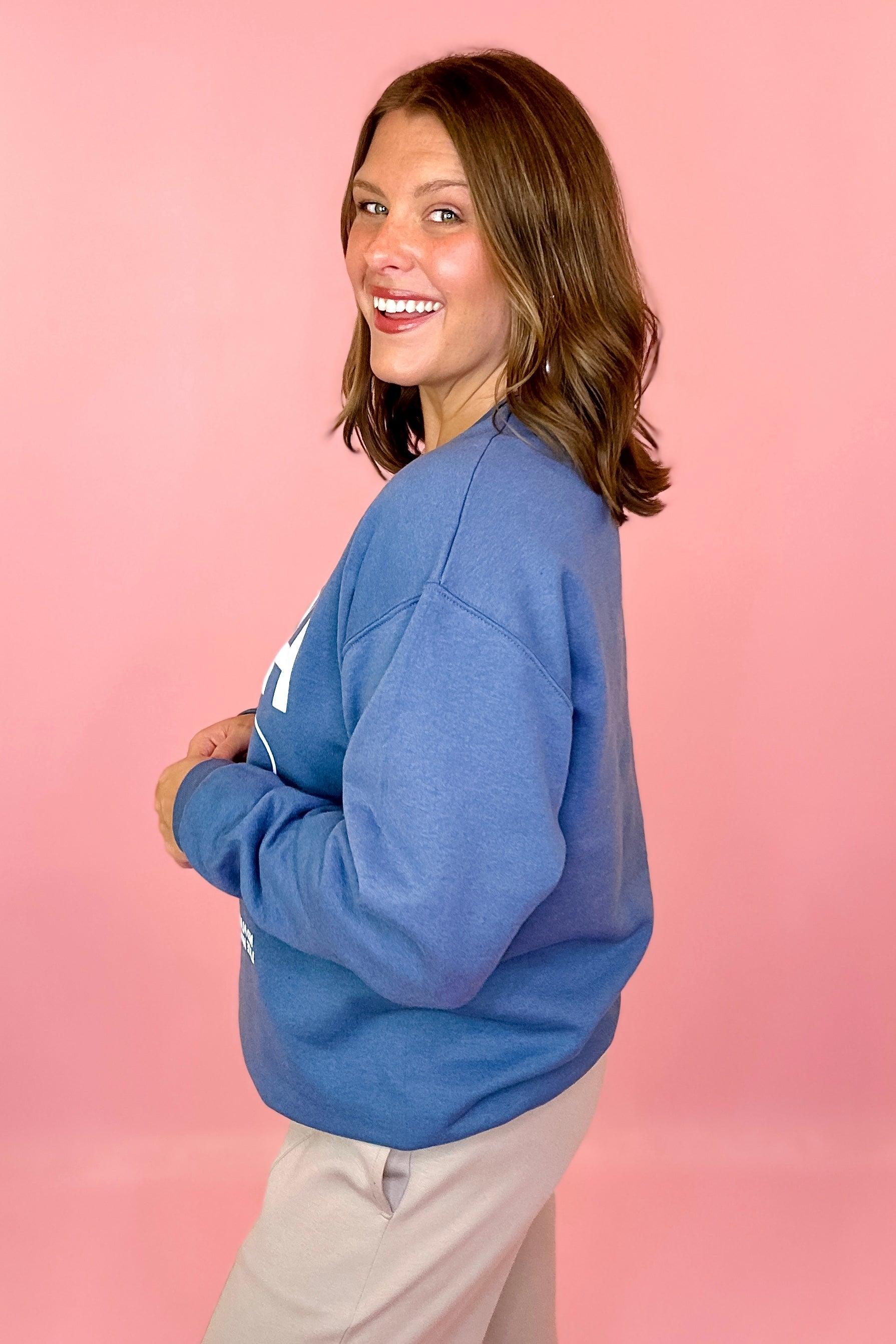 Model Stats: Izzy is 5'8", typically wears a size 10/12 in bottoms and a 38D bust. She is wearing a large in the sweatshirt.