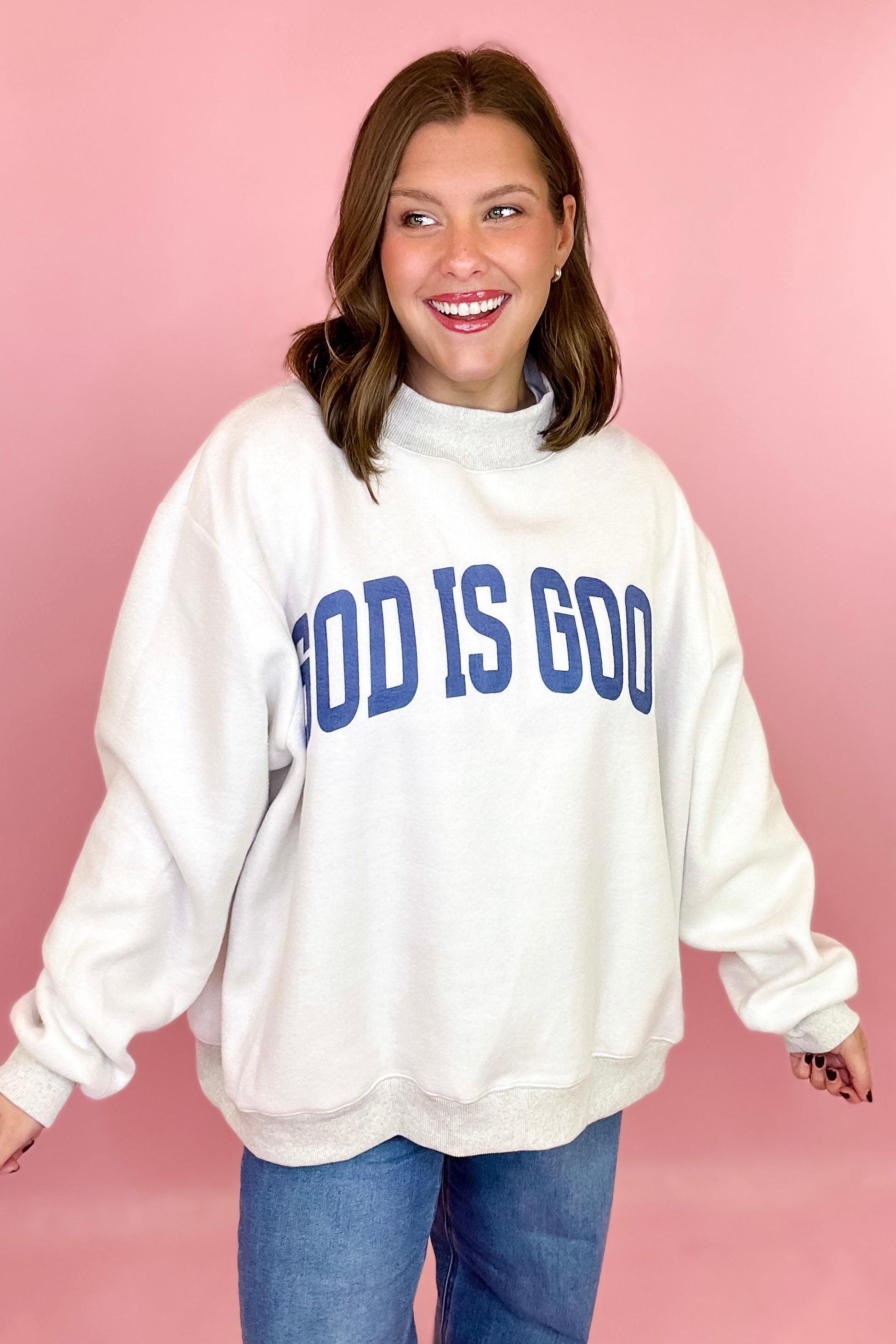 Jesus/God Is Good Reversible Mock Sweatshirt - Grey
