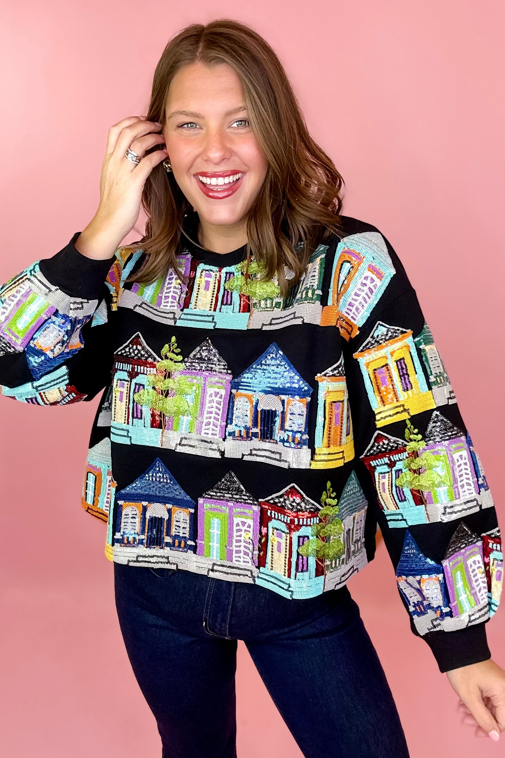 Queen Of Sparkles: Black Multi Nola Porches Sweatshirt