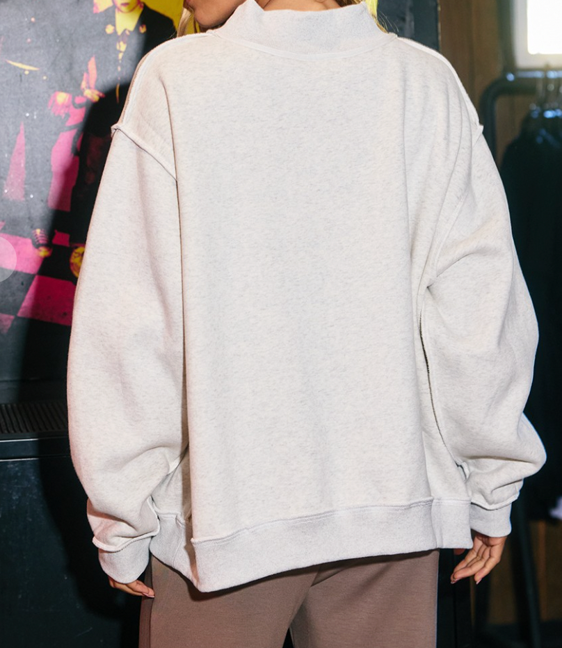 PRE ORDER (12/16): Nash Embroidered Mock Neck Sweatshirt - Grey