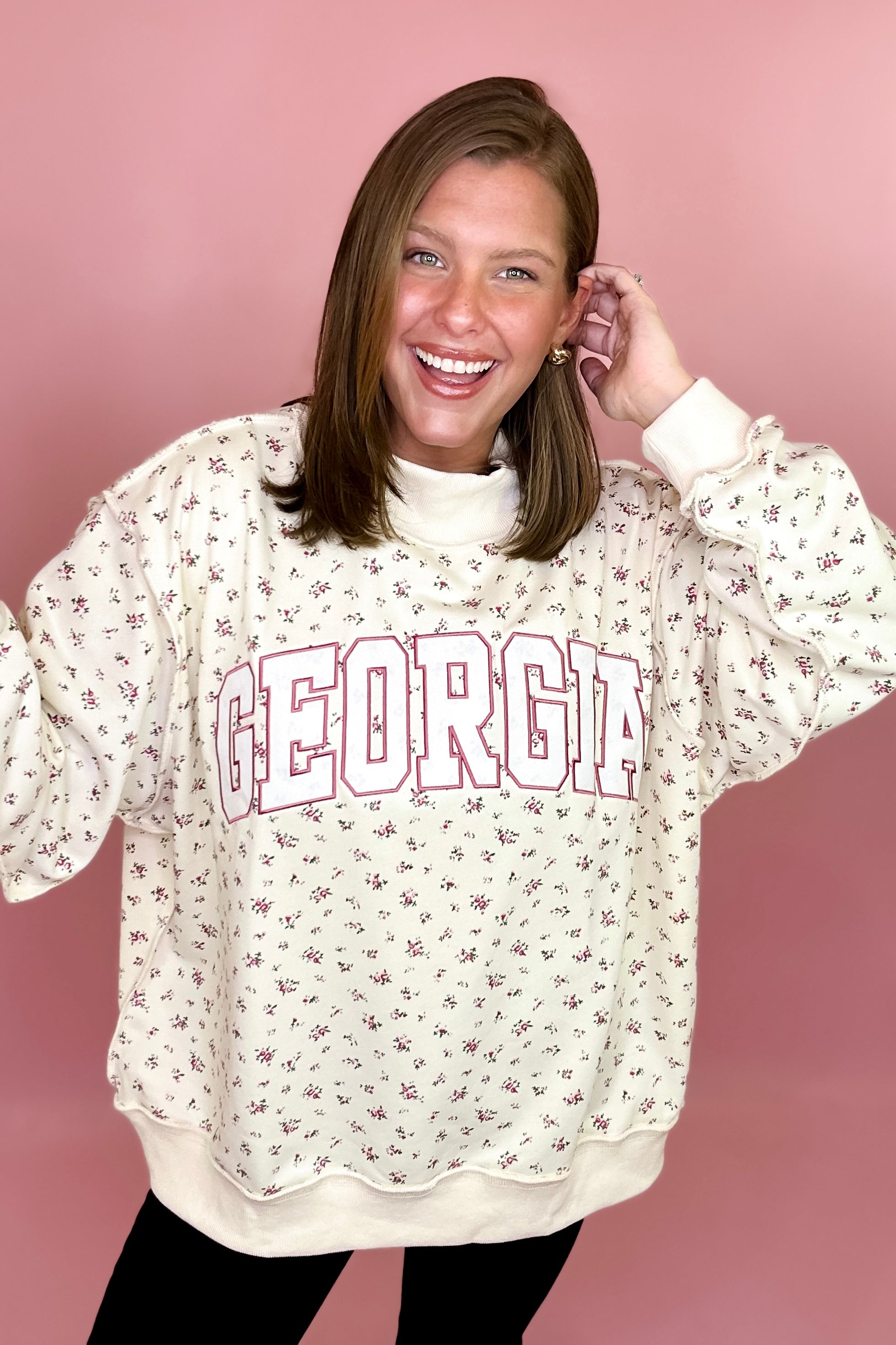 Georgia Floral Embroidered Mock Sweatshirt