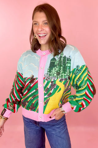 Queen Of Sparkles: Elphaba & Glinda Colorblock Profile Cardigan - Pink/Green