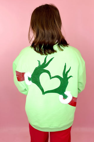 Queen Of Sparkles: Grinch Heart Hands Sweatshirt - Green