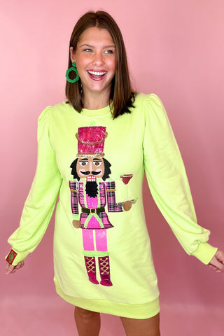 Queen Of Sparkles: Nutcracker Serving Cocktails Sweatshirt Dress - Bright Green & Pink