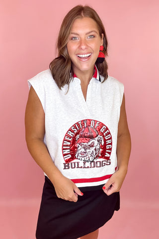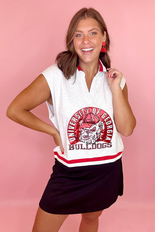 Queen Of Sparkles: UGA Mini Icon Striped Button Down Long Sleeve Top