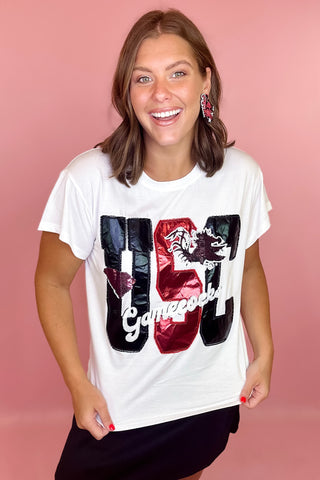 Queen Of Sparkles: LSU Mascot Sequin Flower Tee
