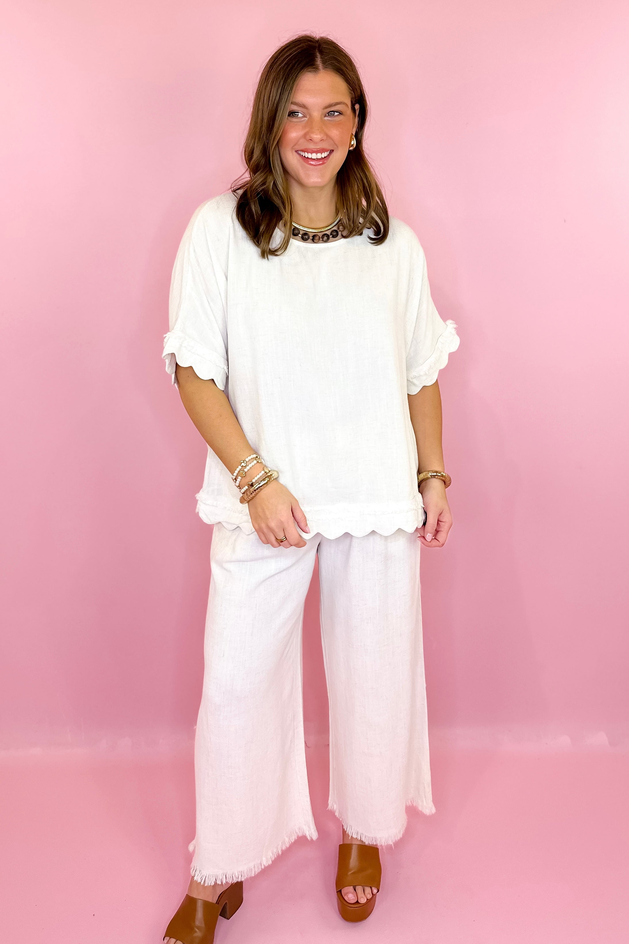 Chill Day Frayed Linen Top - Oatmeal