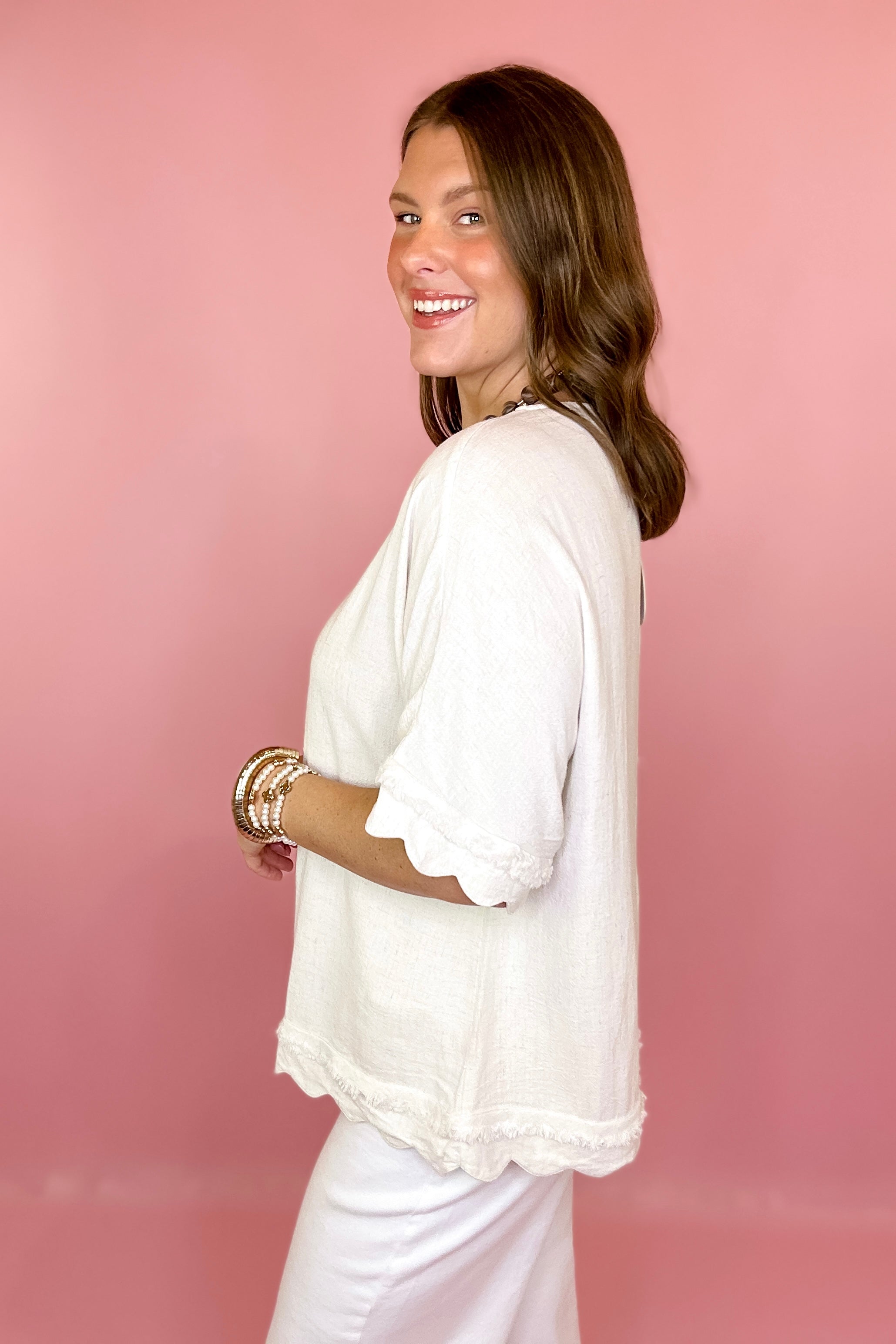 - Scallop hem with frayed trim