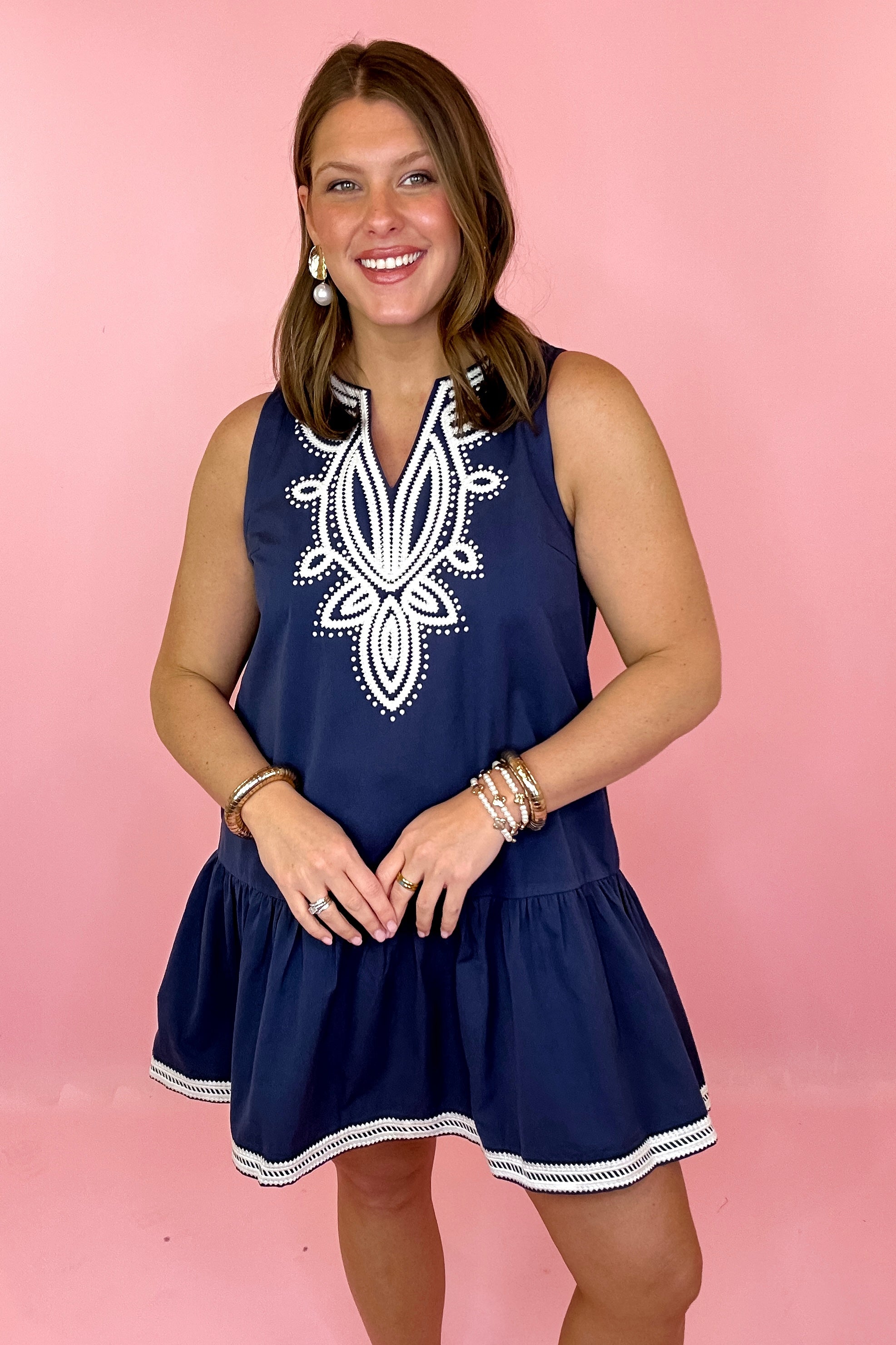 Easy Getaway Embroidered Mini Dress - Navy