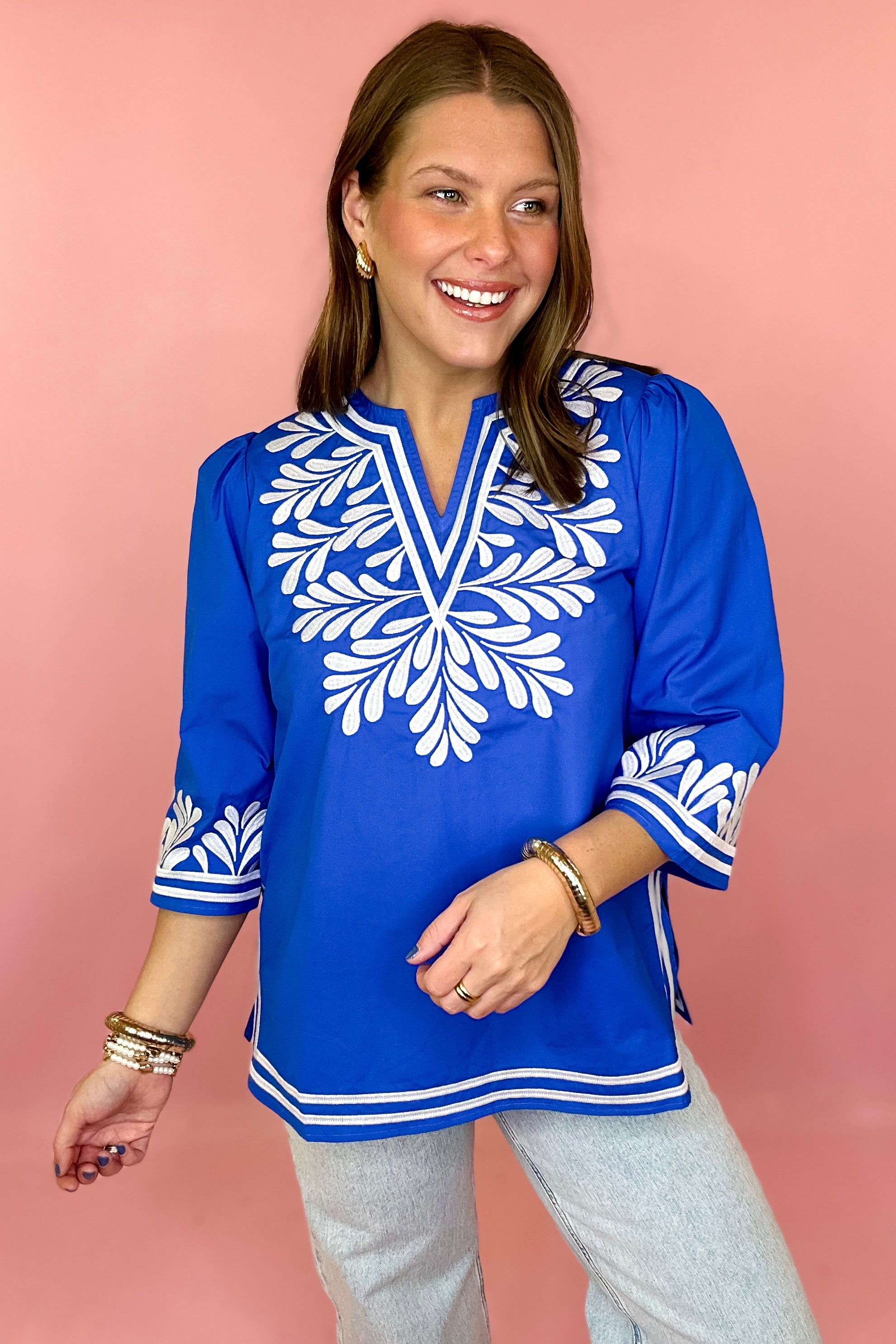 Just This Time Embroidered Top - Royal
