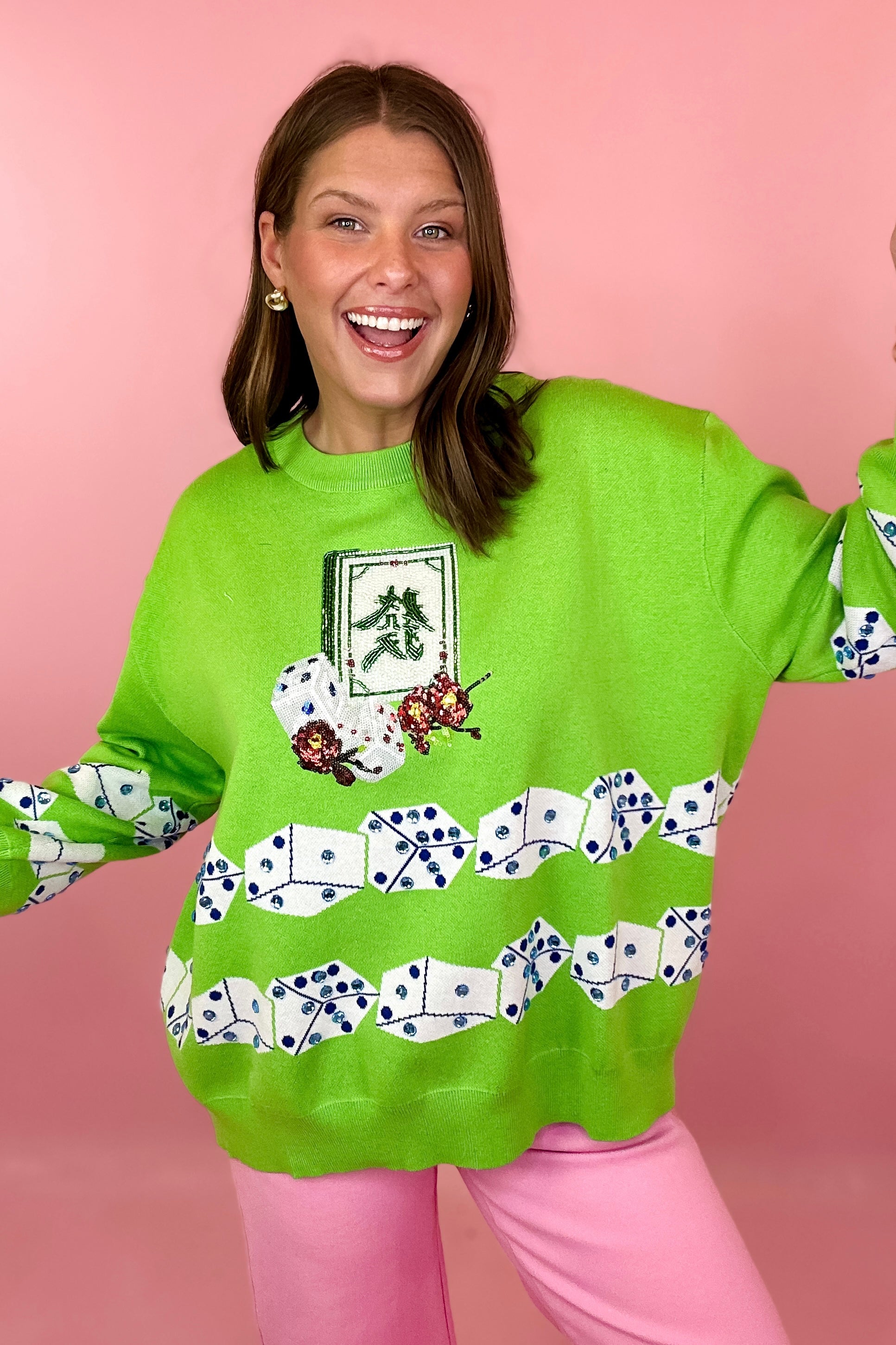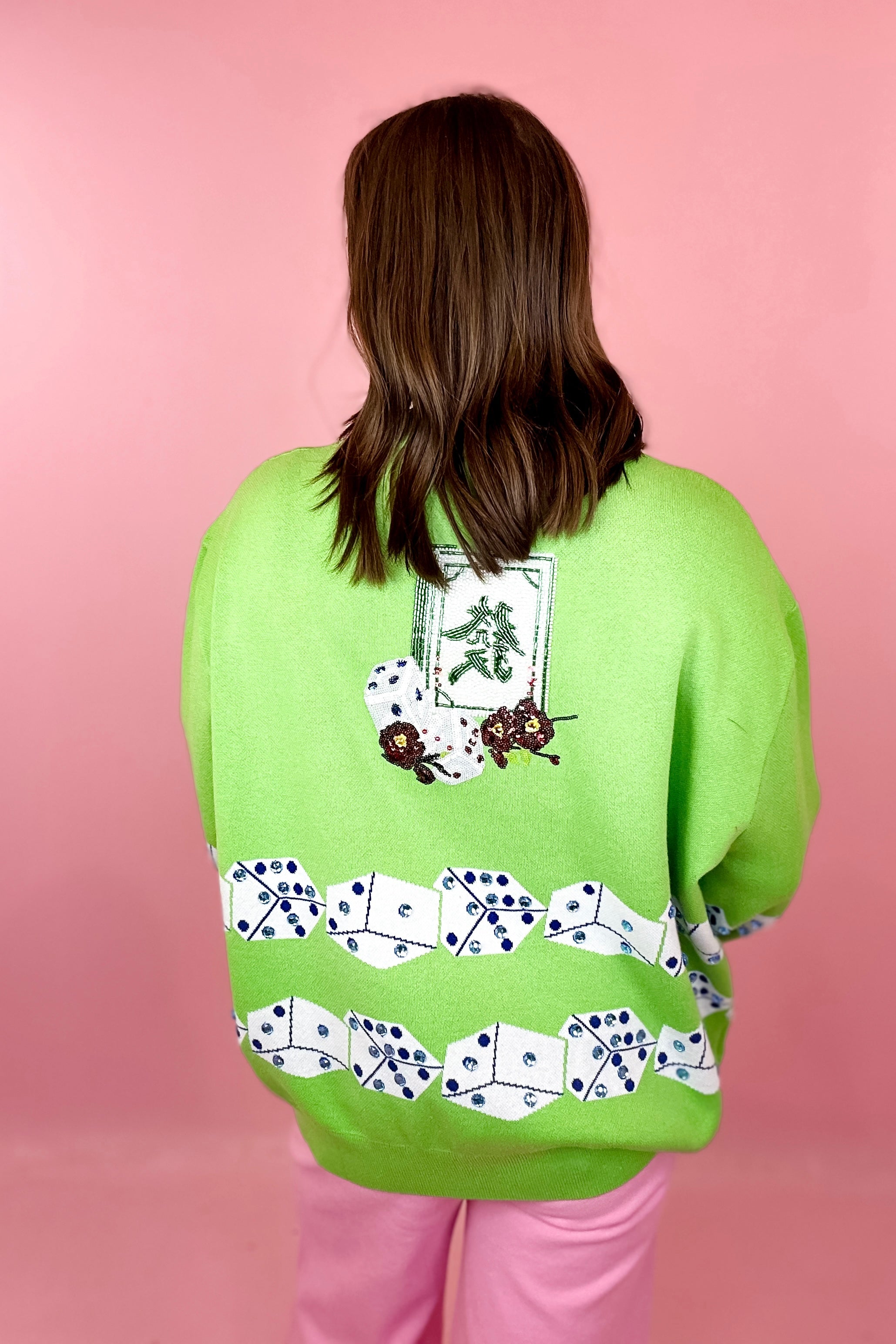 Queen Of Sparkles: Green Mahjong Tile & Dice Knit Sweater