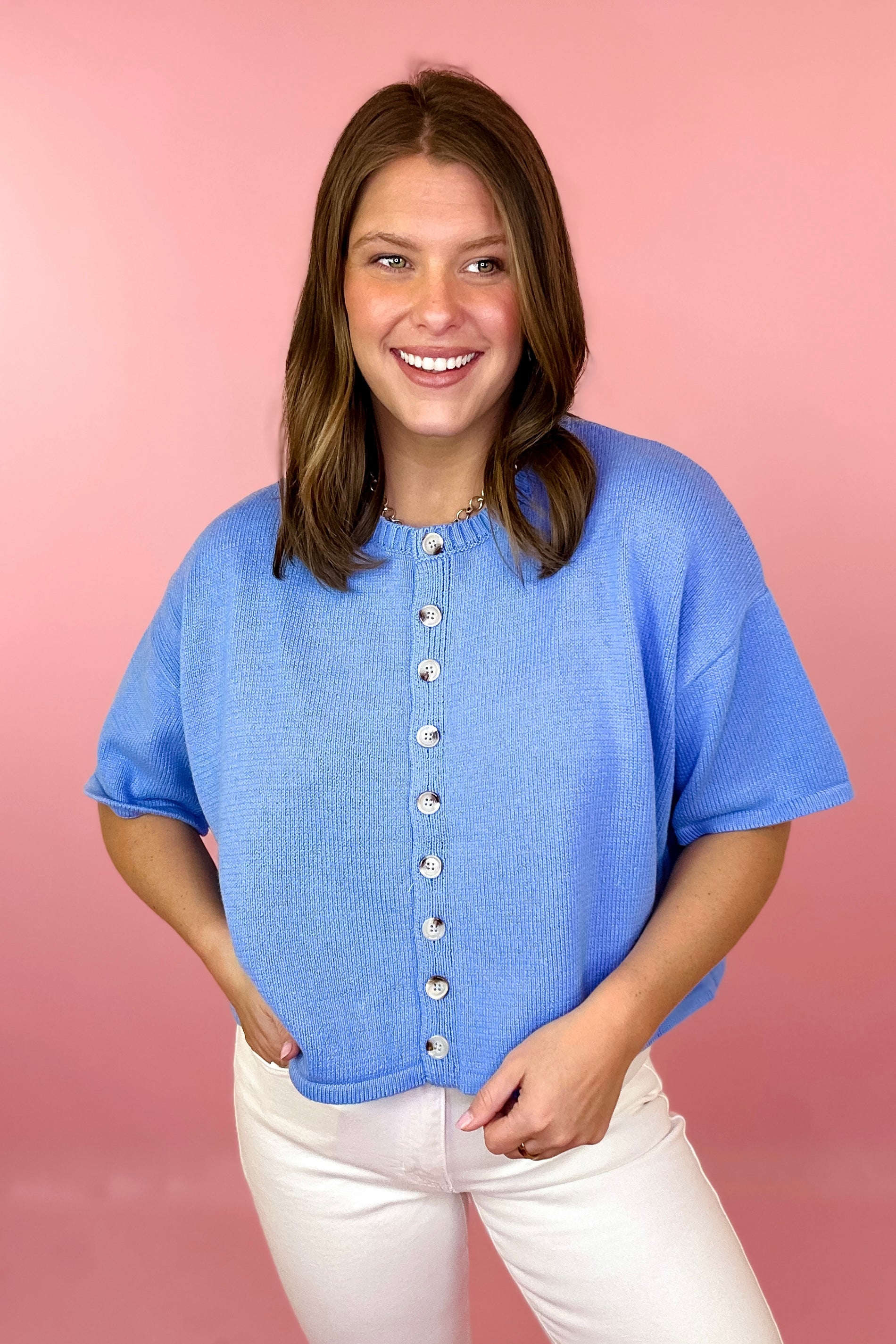 - Short sleeve button front cardigan