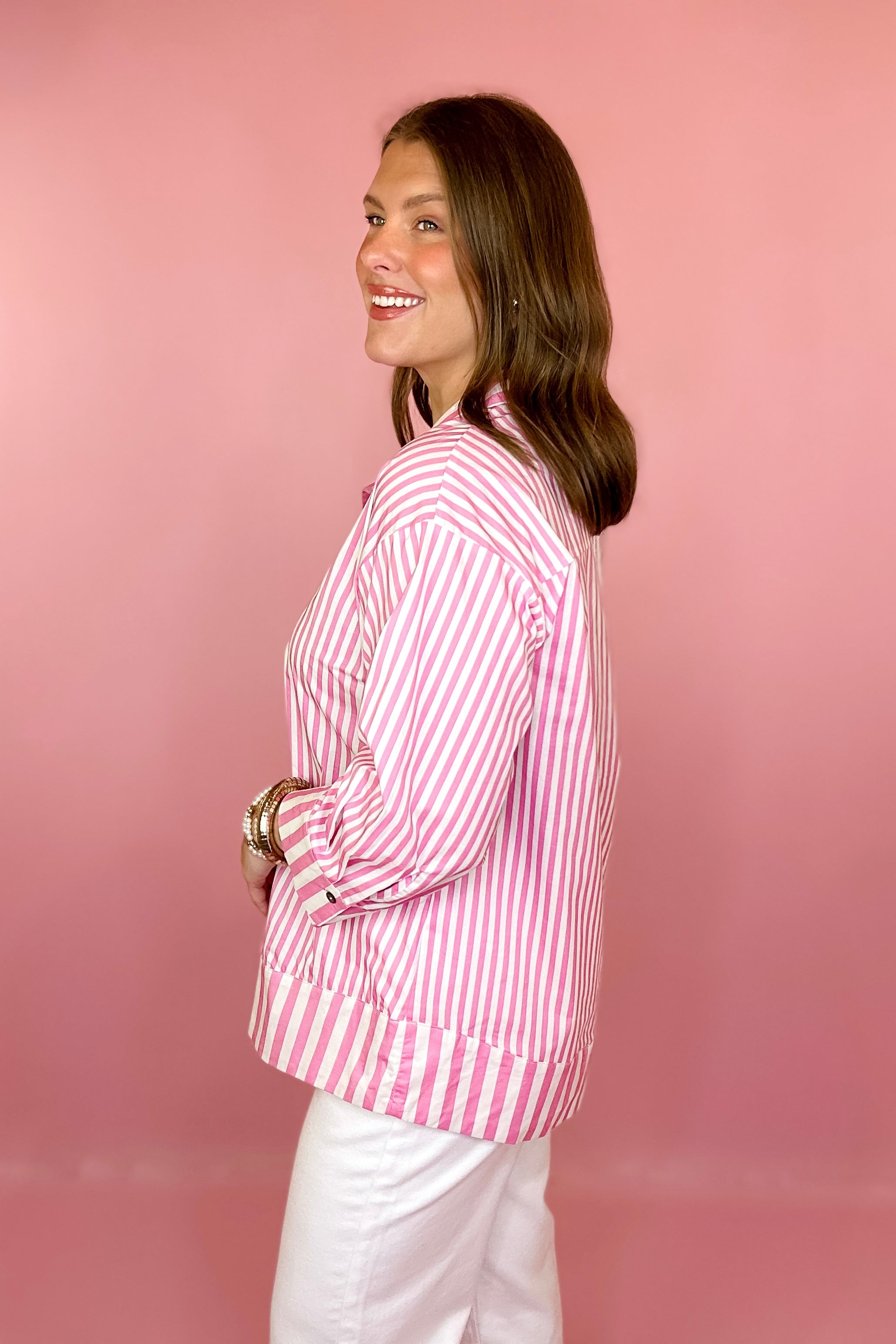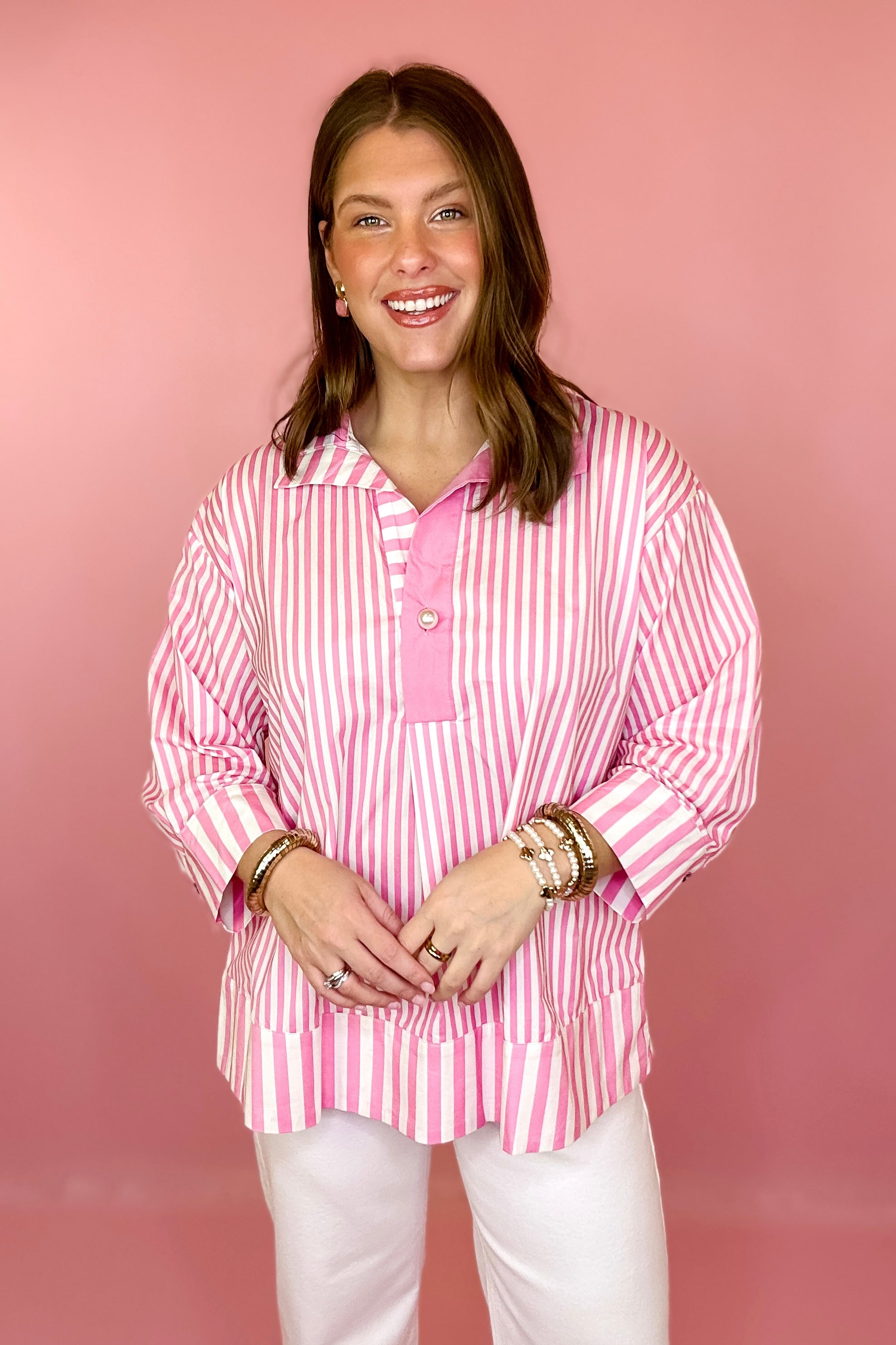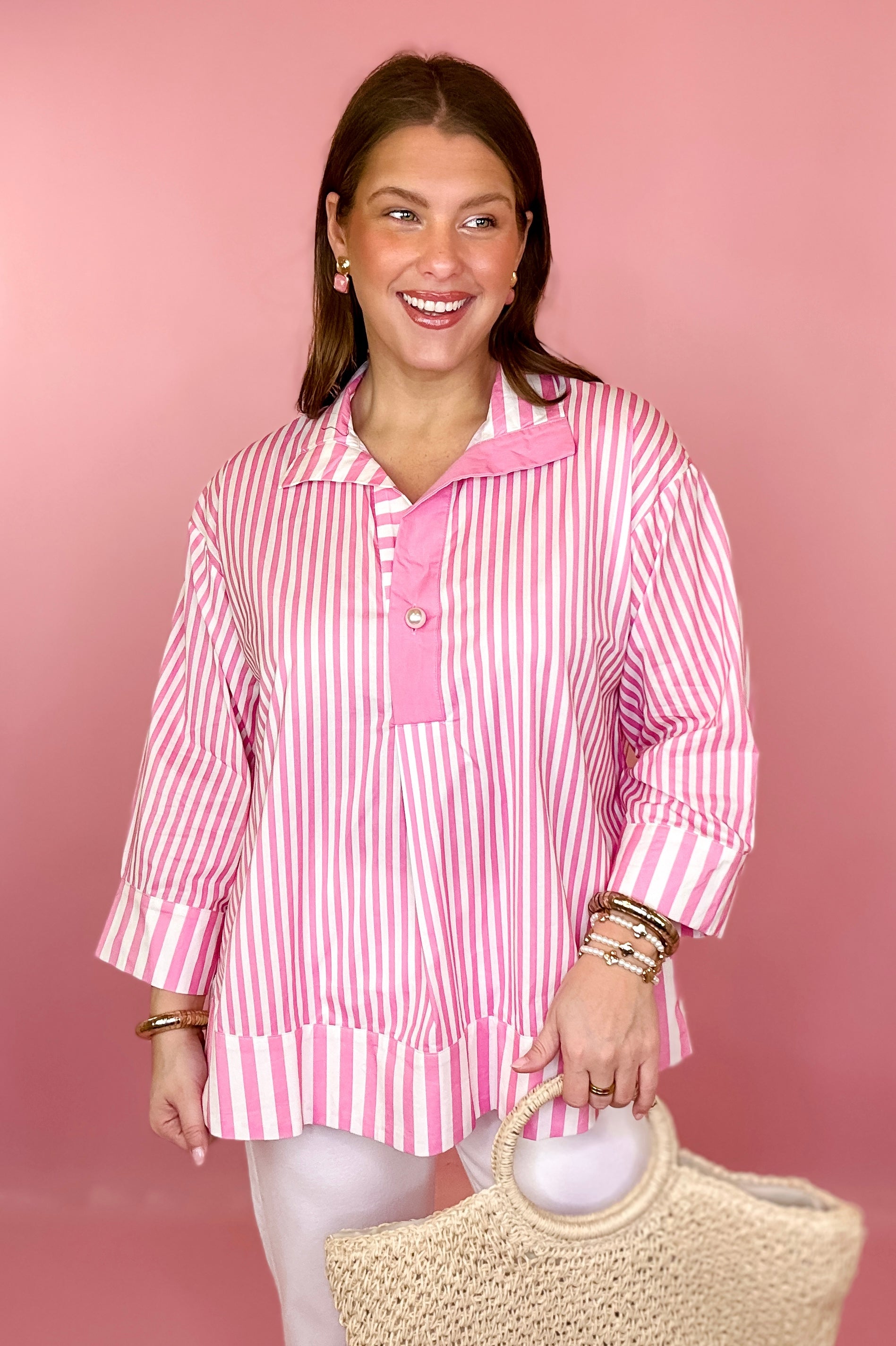 - Pink and white striped top