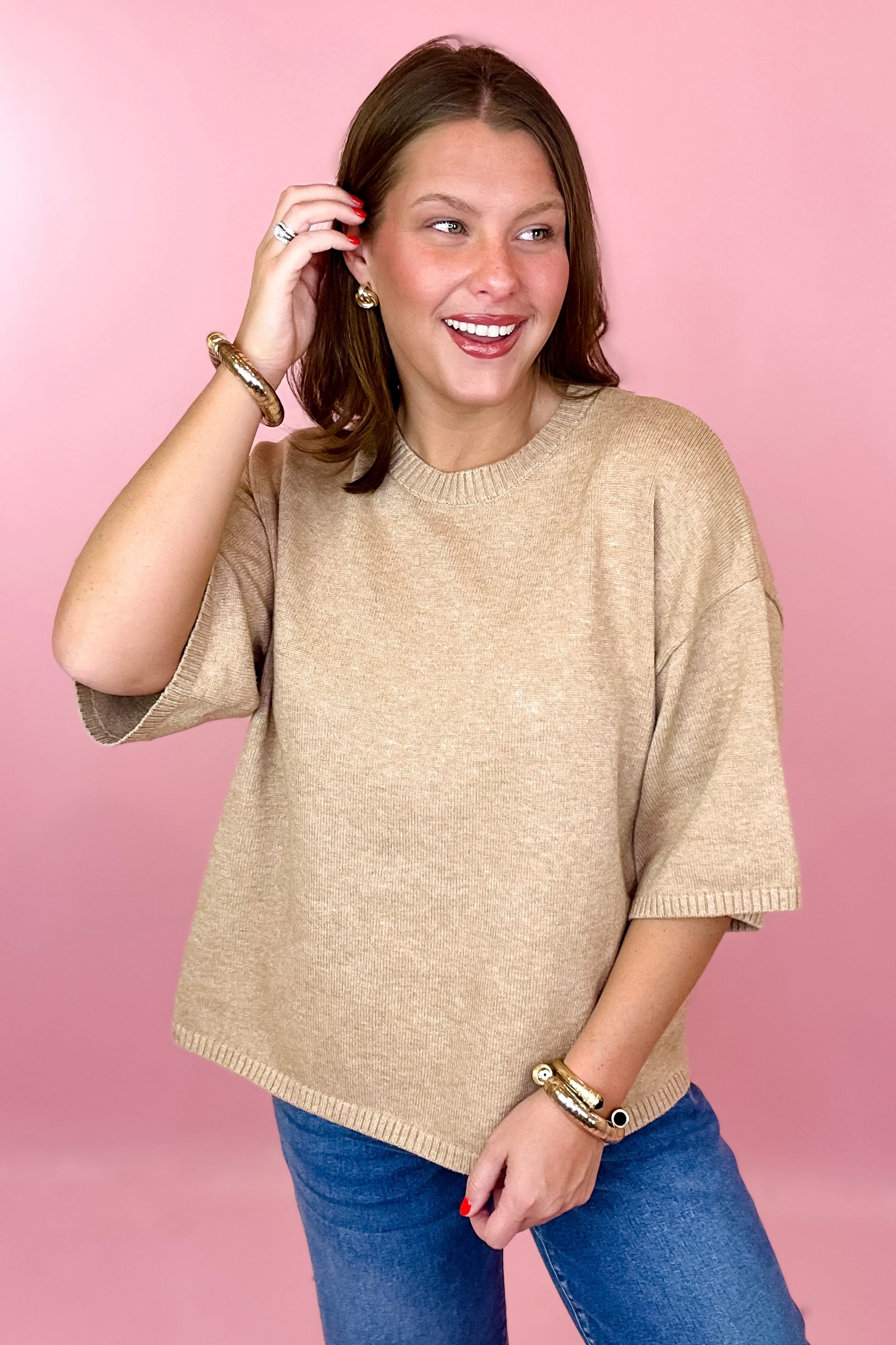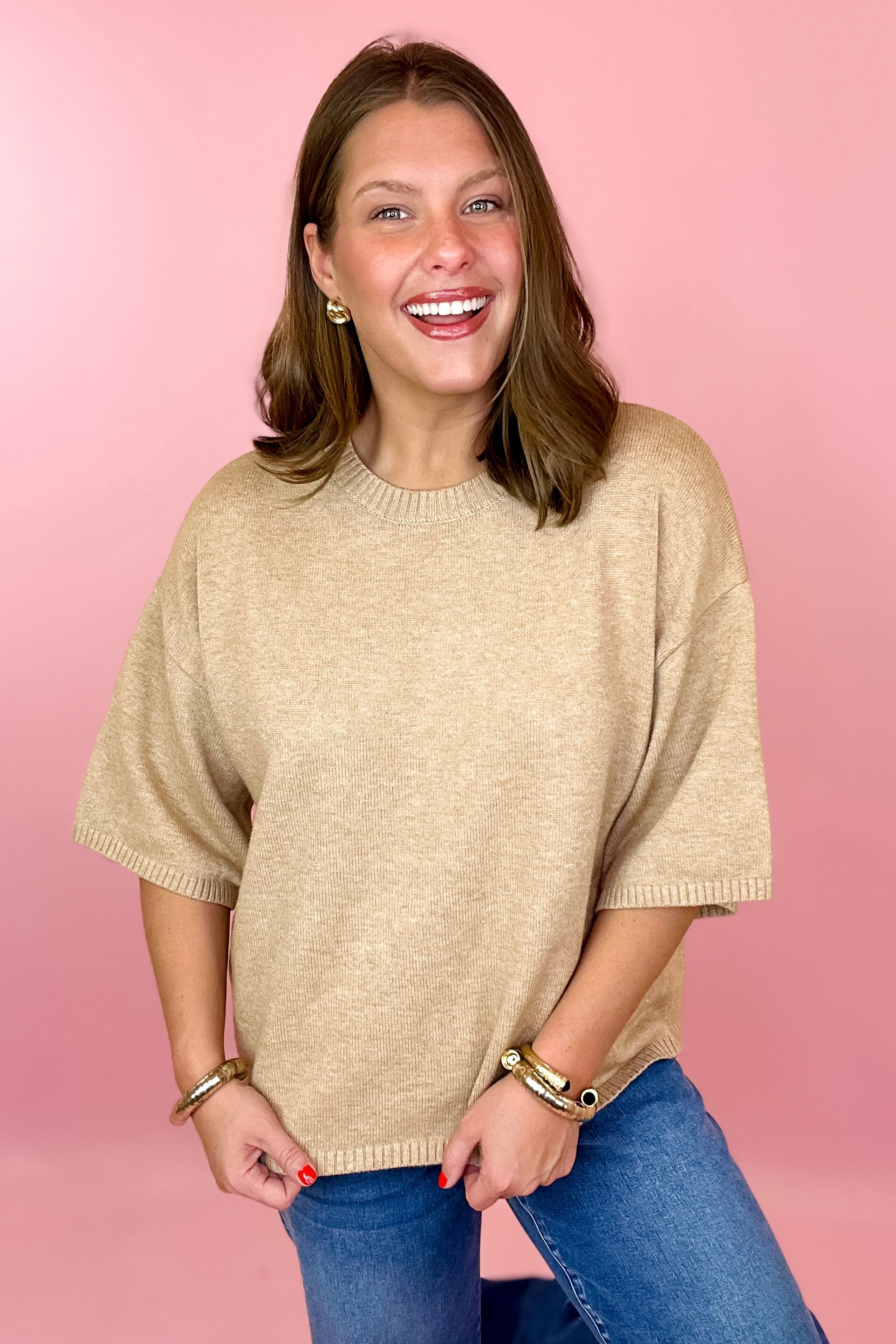 True Classic Short Sleeve Sweater - Taupe