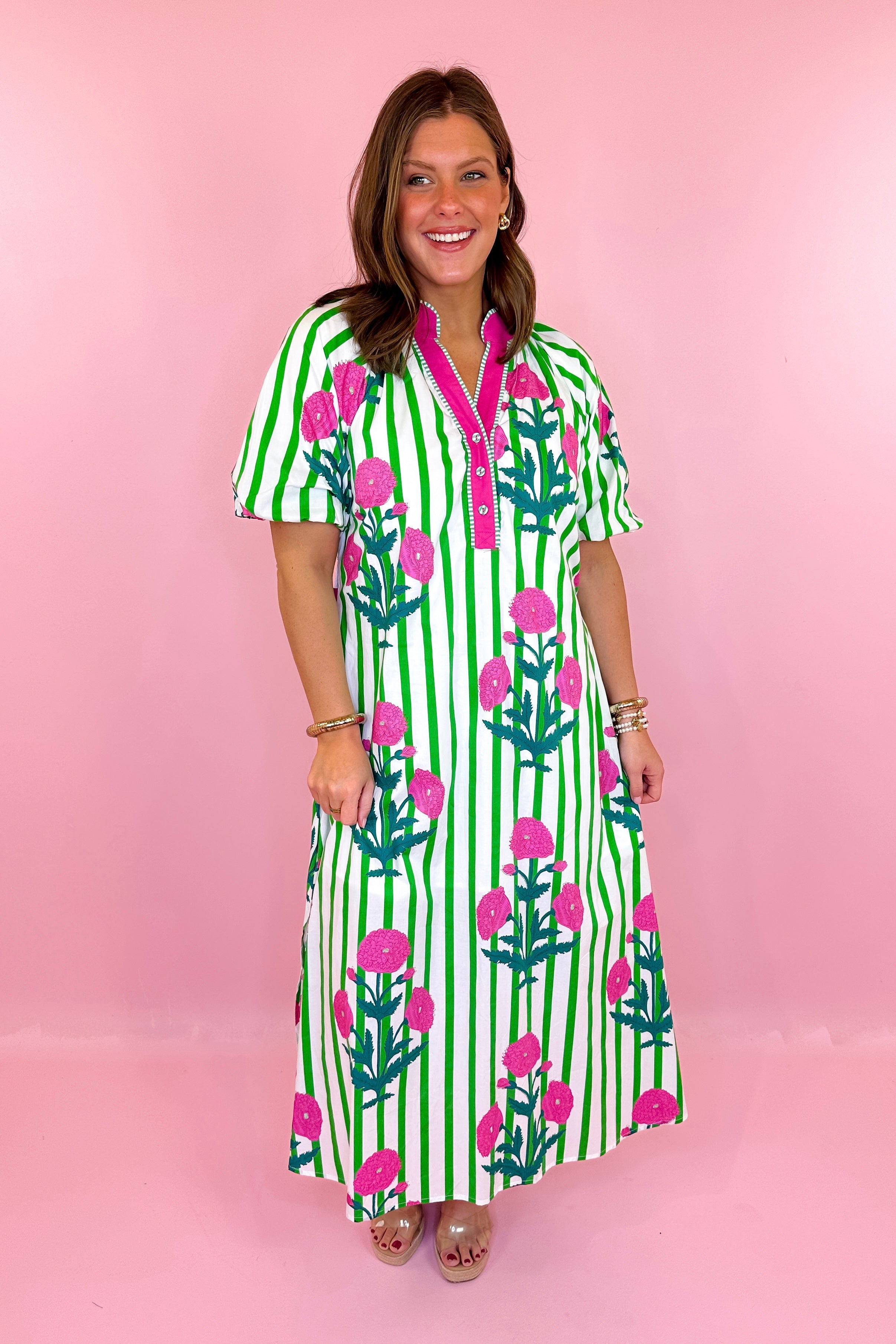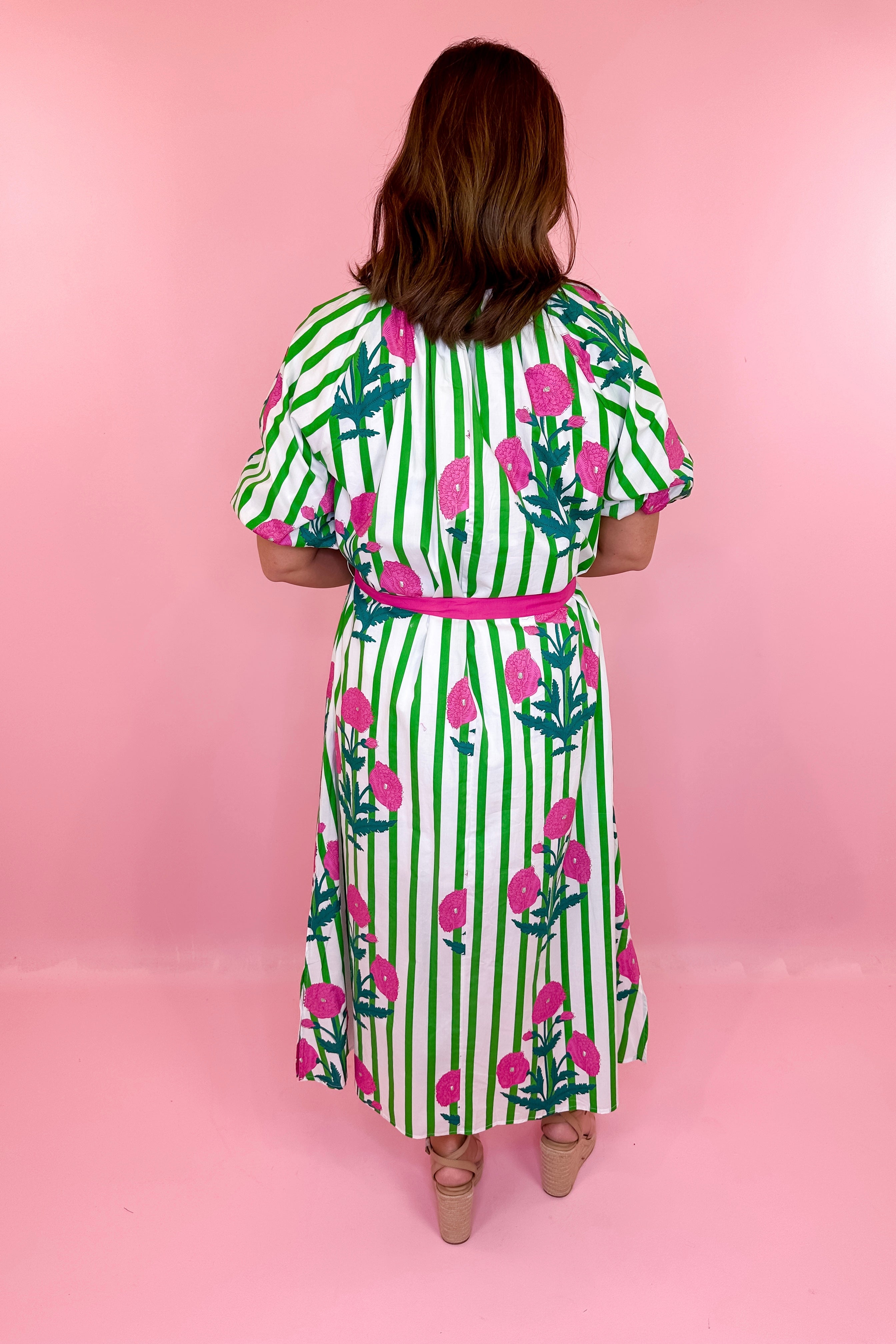 Cabana Stripe Floral Midi Dress - Green