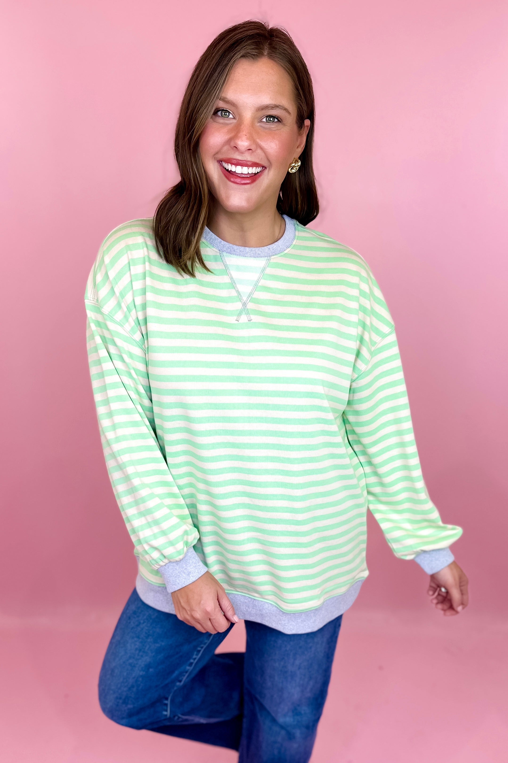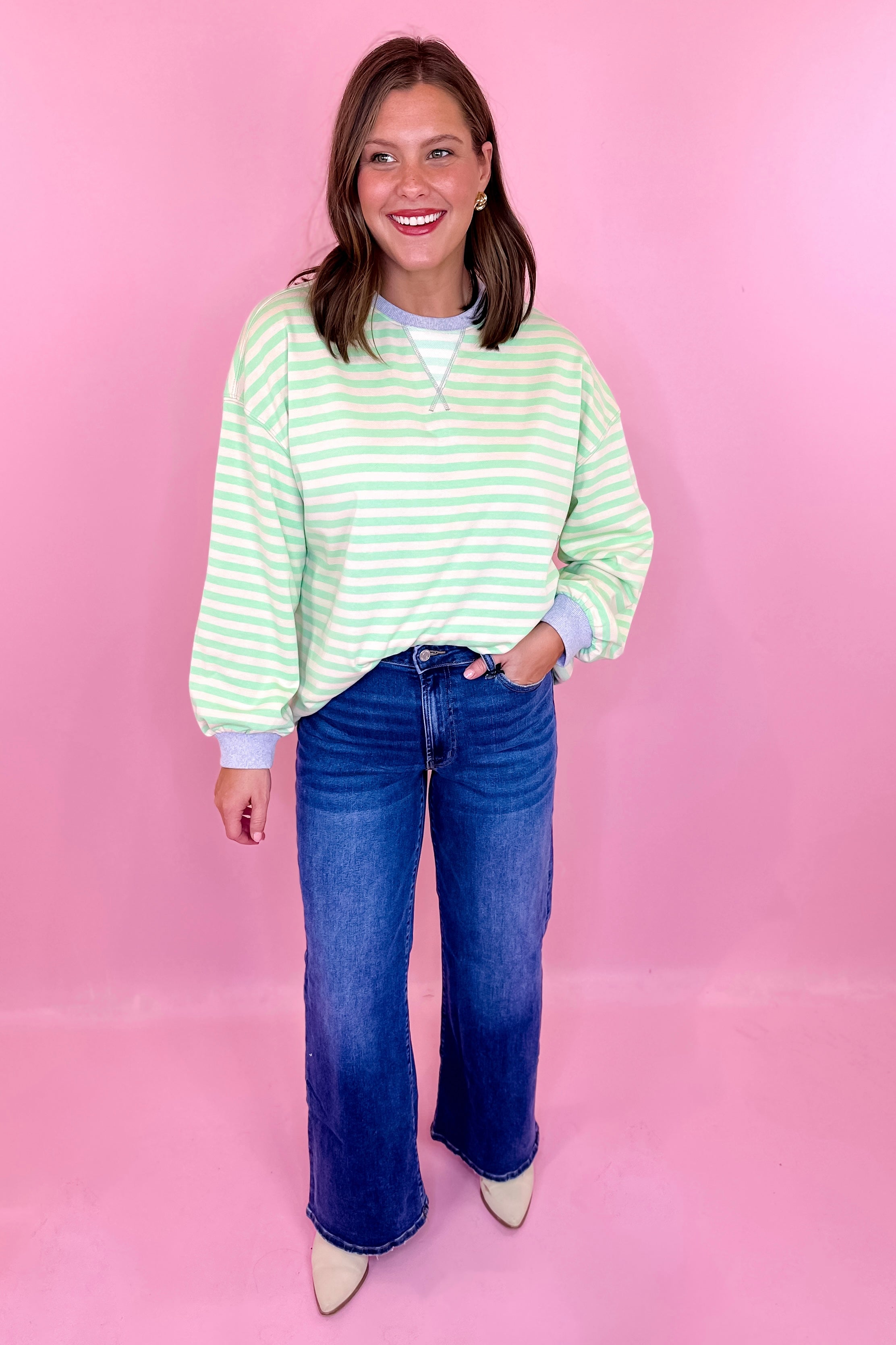 Classic Striped Crewneck Sweatshirt - Mint/Blue