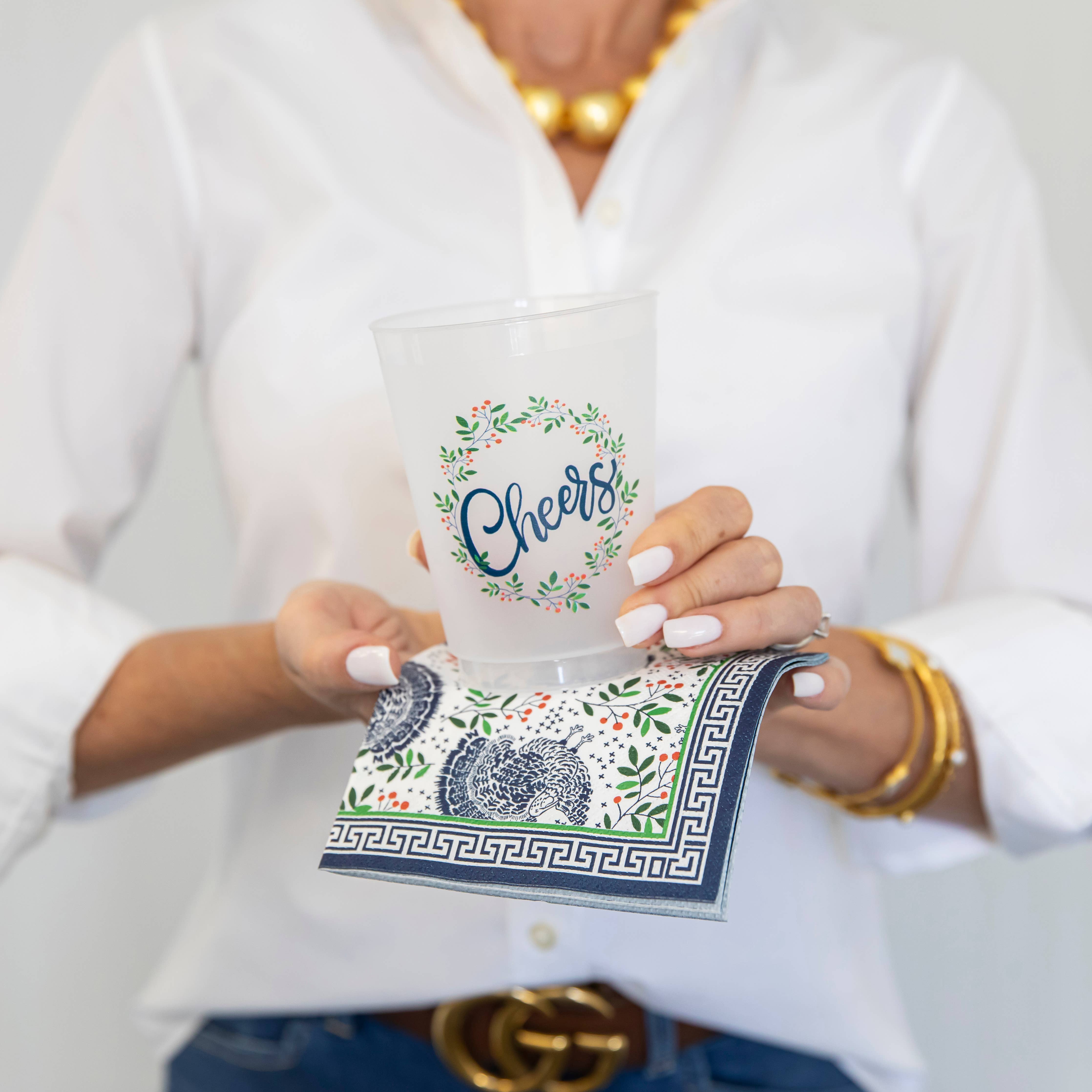 5"x5" folded and 3-ply paper, they hold our all-over gorgeous patterns, and are packaged in sets of 20 in a clear bag.