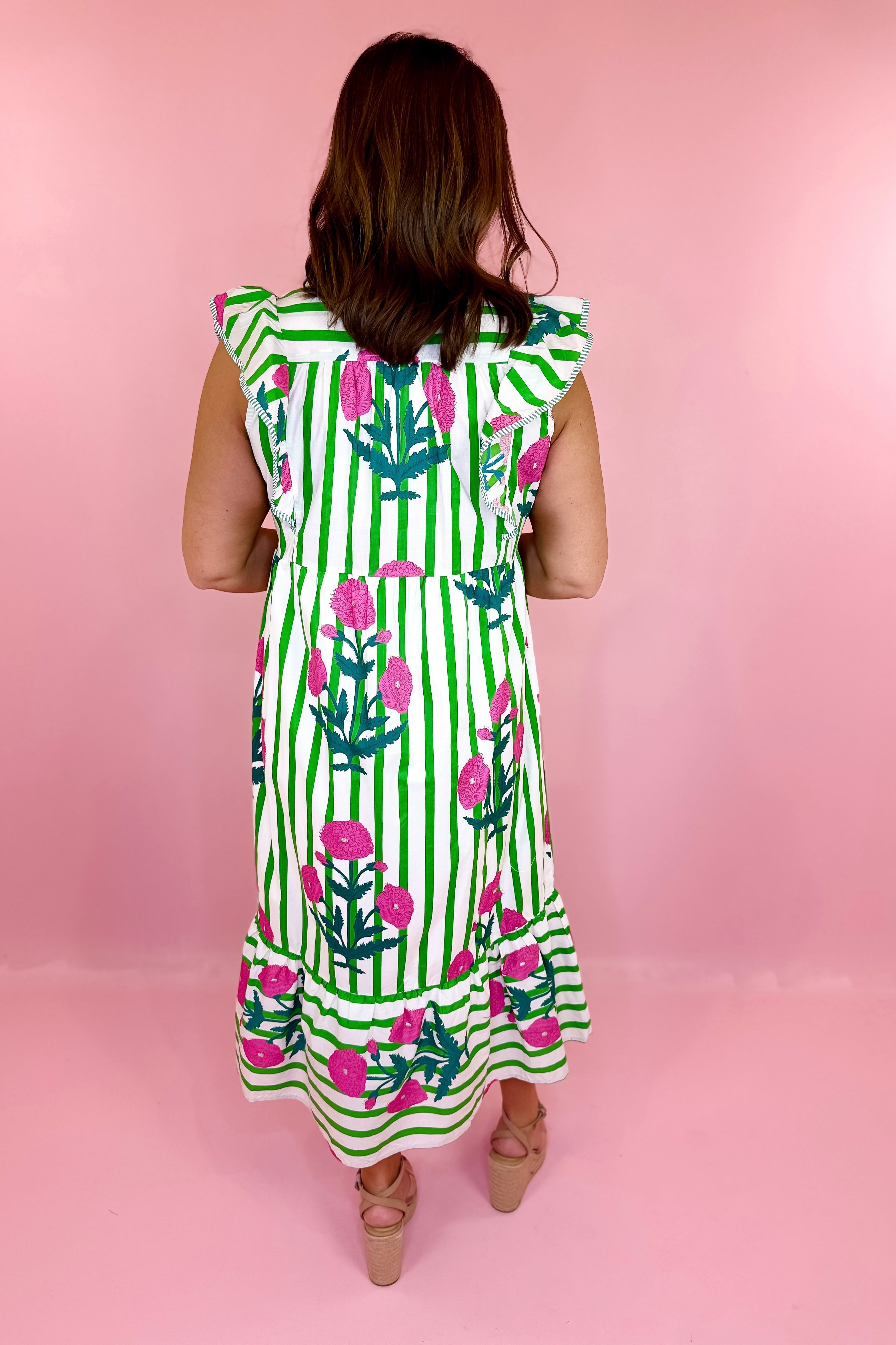 - Mix stripe floral midi dress